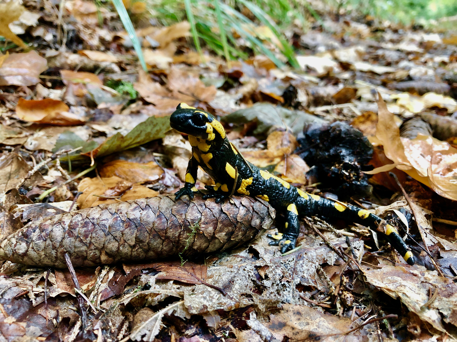Mein Spaziergang im Nieselregen wurde vom wohl anmutigsten Feuersalamander der Nordhalbkugel eingeleitet.