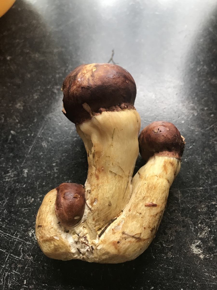 Für den Fichtensteinpilz fehlt uns der weiße Hutrand, da nicht blauend auch kein Maronenröhrling. Nun kamen wir aufgrund der Merkmale auf den Kiefernsteinpilz, da fehlt mir aber zumindest beim großen das Stielnetz.