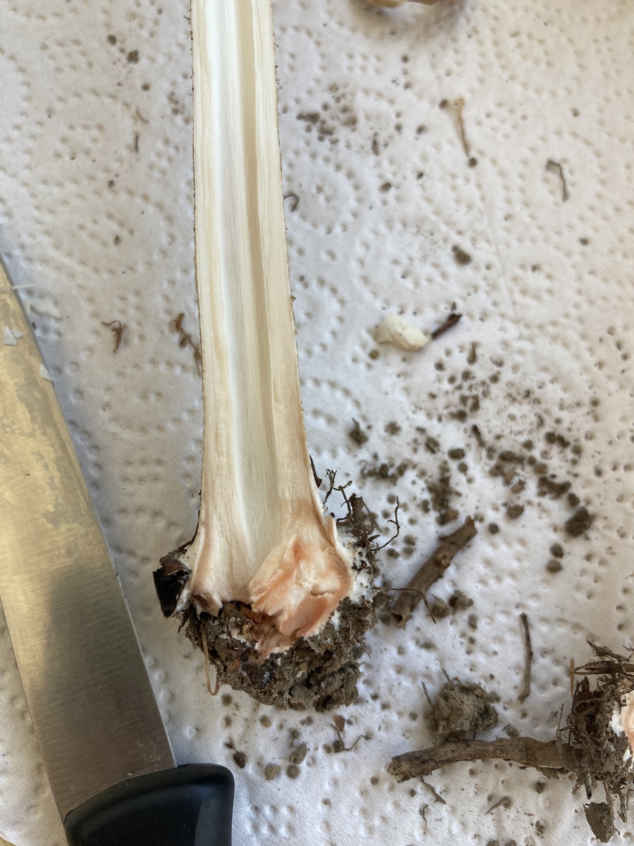 Das Fleisch rötet ausschließlich in der Stielbasis nach einigen Minuten ein wenig, ansonsten überall weiß bleibend.