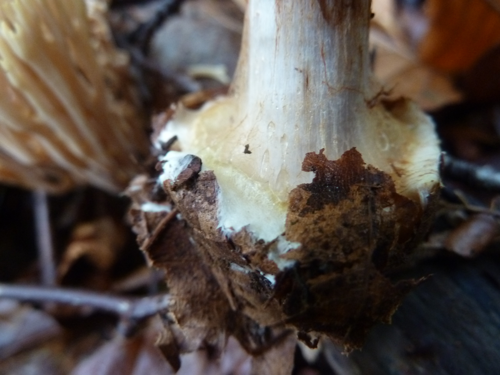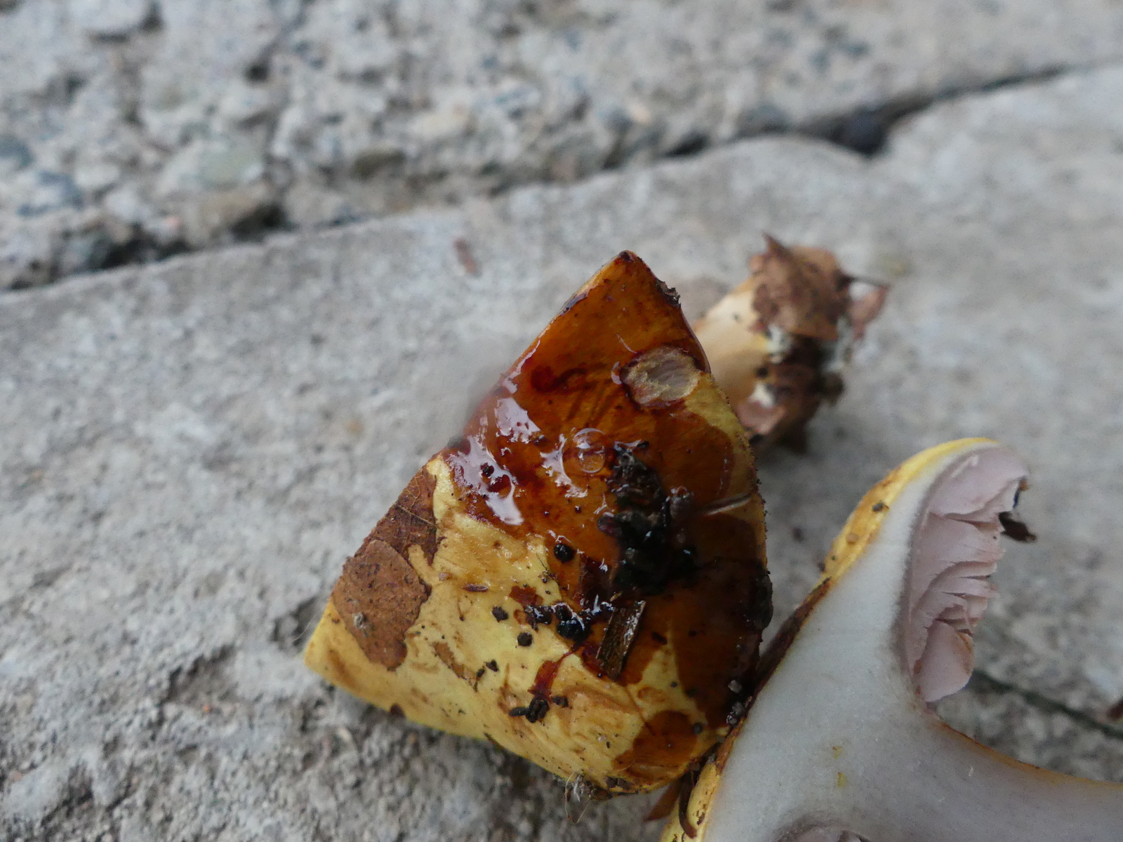 Die NaOH-Reaktion ist interessant, die Farbreaktion fällt auf der Huthaut, Knollenrand; Lamellen und Stielfleisch sehr unterschiedlich aus: