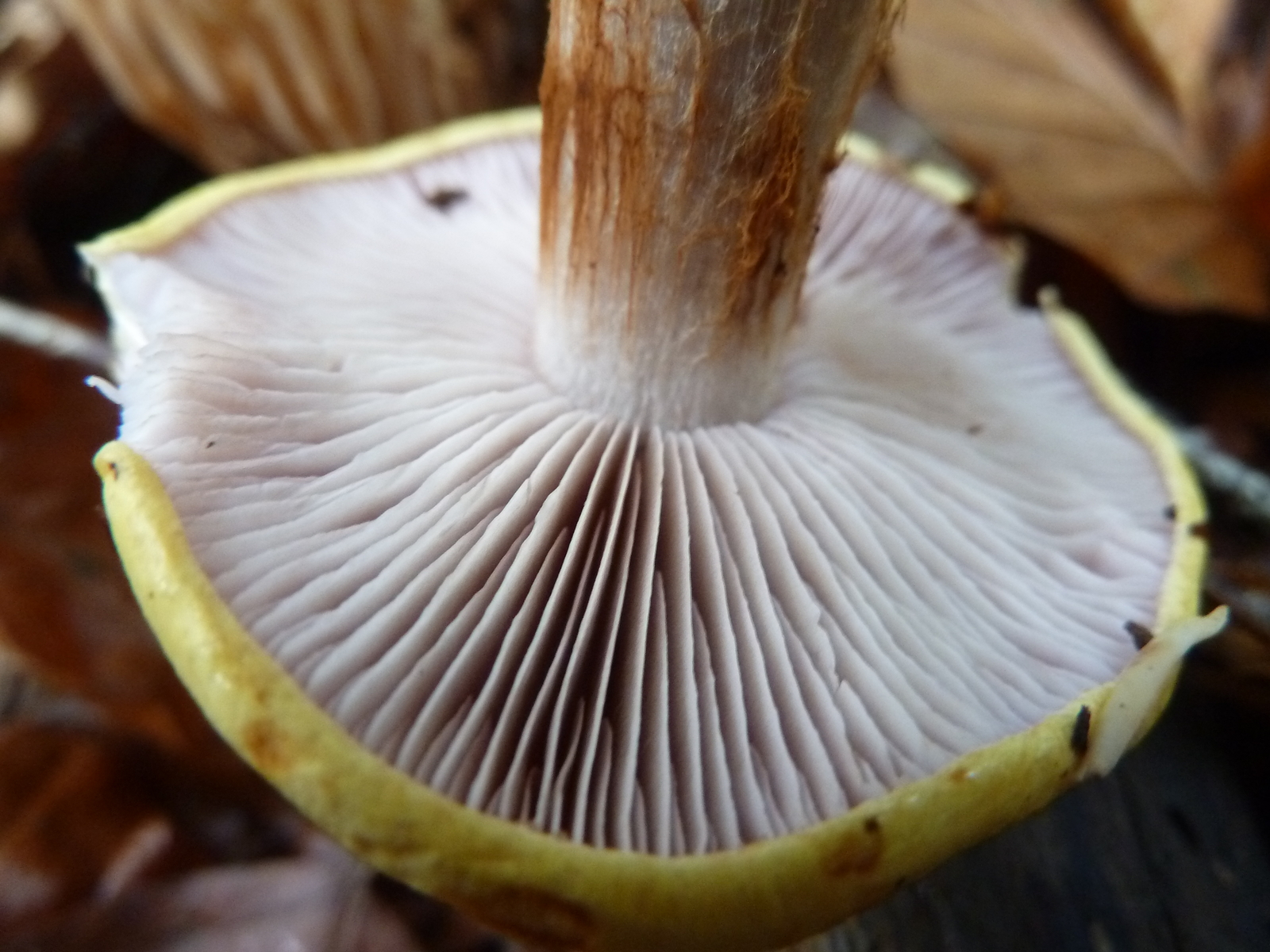 Noch ein Klumpfuß, den ich gestern in meinem Lieblingsrevier zwischen Herborn und Dillenburg gefunden habe, diesmal allerdings im reinen Buchenwald auf basischem Basaltboden. Leider nur dieses Einzelexemplar, welches recht zierlich daherkommt, Hutdurchmesser ca. 6 cm.