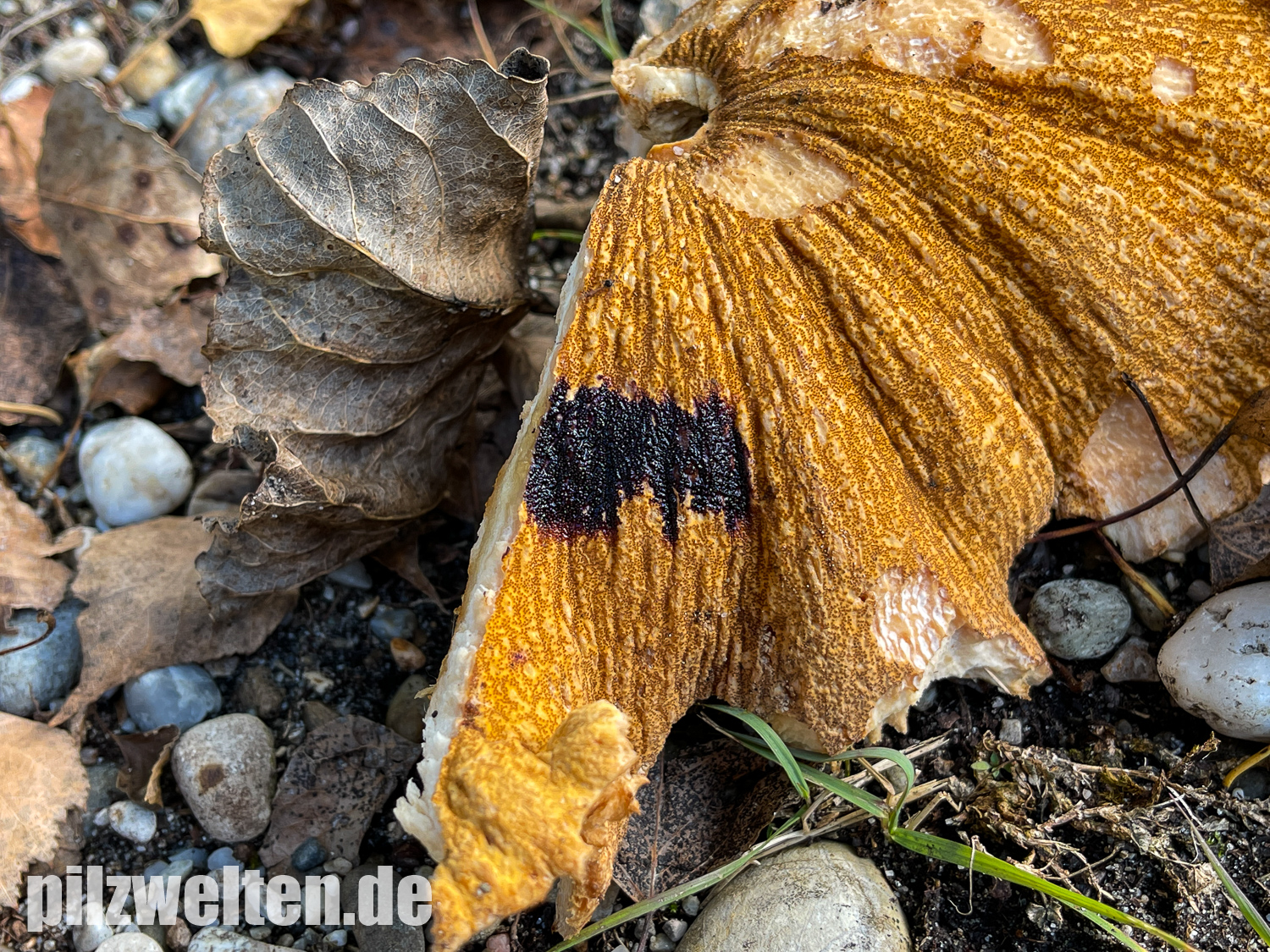Farbreaktion mit Kalilauge auf der Hutunterseite (Fleisch & Hutoberseite ohne Farbveränderung)