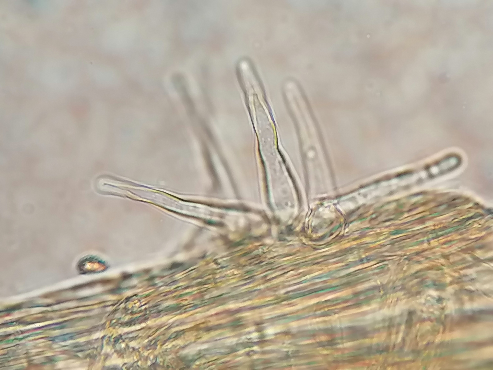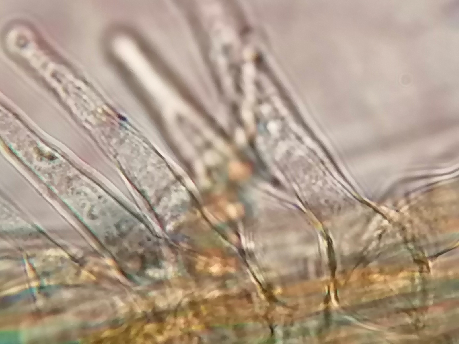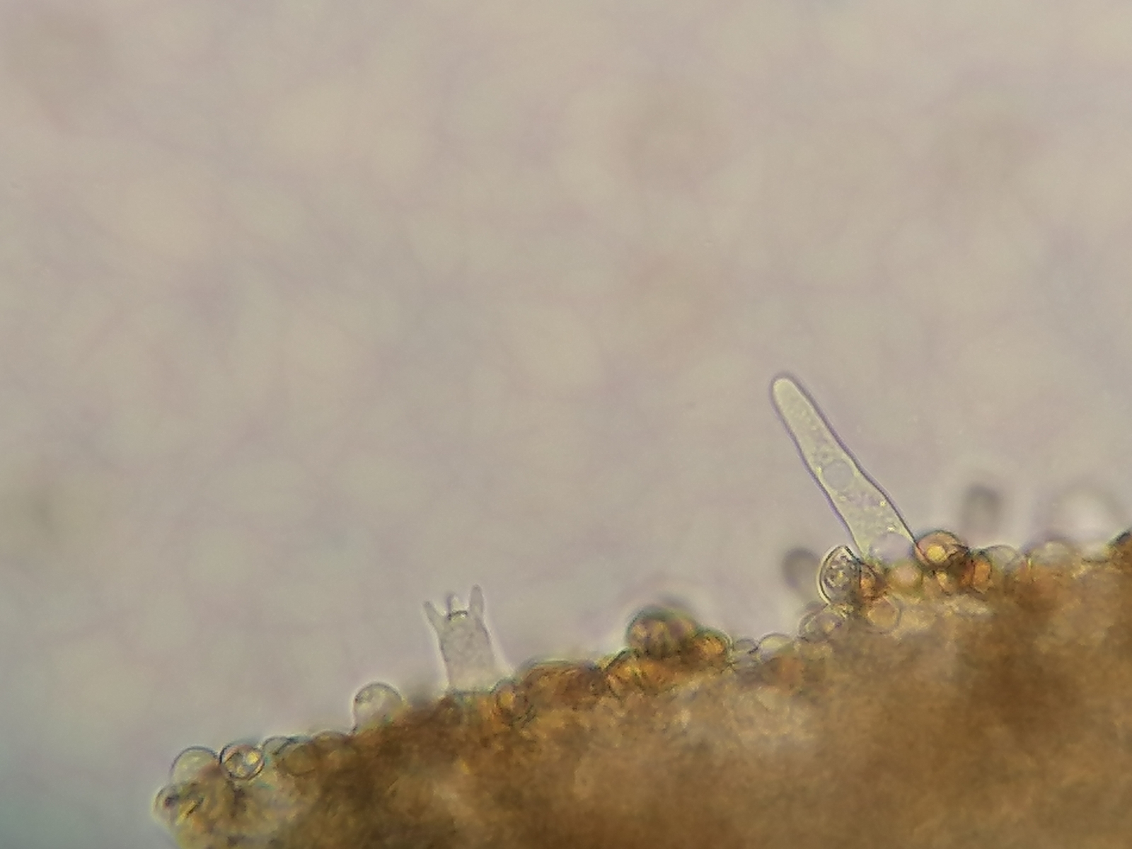 Lamellenseite mit der einzigen Pleurozystide, die ich beim kompletten Lamellenquerschnitt gefunden habe