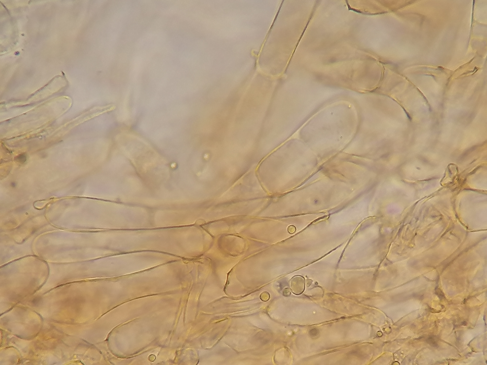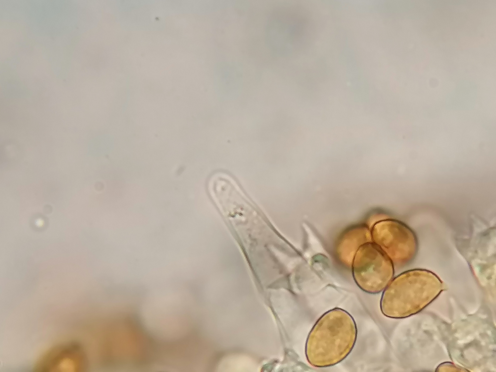 Pilz 2 ist ganz sicher eine Galerina. Die Form der Zystiden findest Du bei vittiformis/atkinsoniana aber auch perplexa, wobei die augenscheinlich schwache Qrnamentierung der Sporen sogar gut zu perplexa passt. Zur genauen Bestimmung müsstest Du noch auf Pileozystiden und Kaulozystiden schauen und eventuell auch noch auf die Anwesenheit von Pleurozystiden. Galerina ist eine tolle Gattung, aber sie macht etwas Arbeit :giggle:.