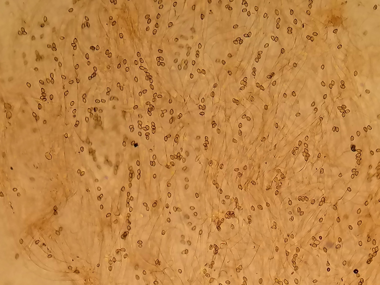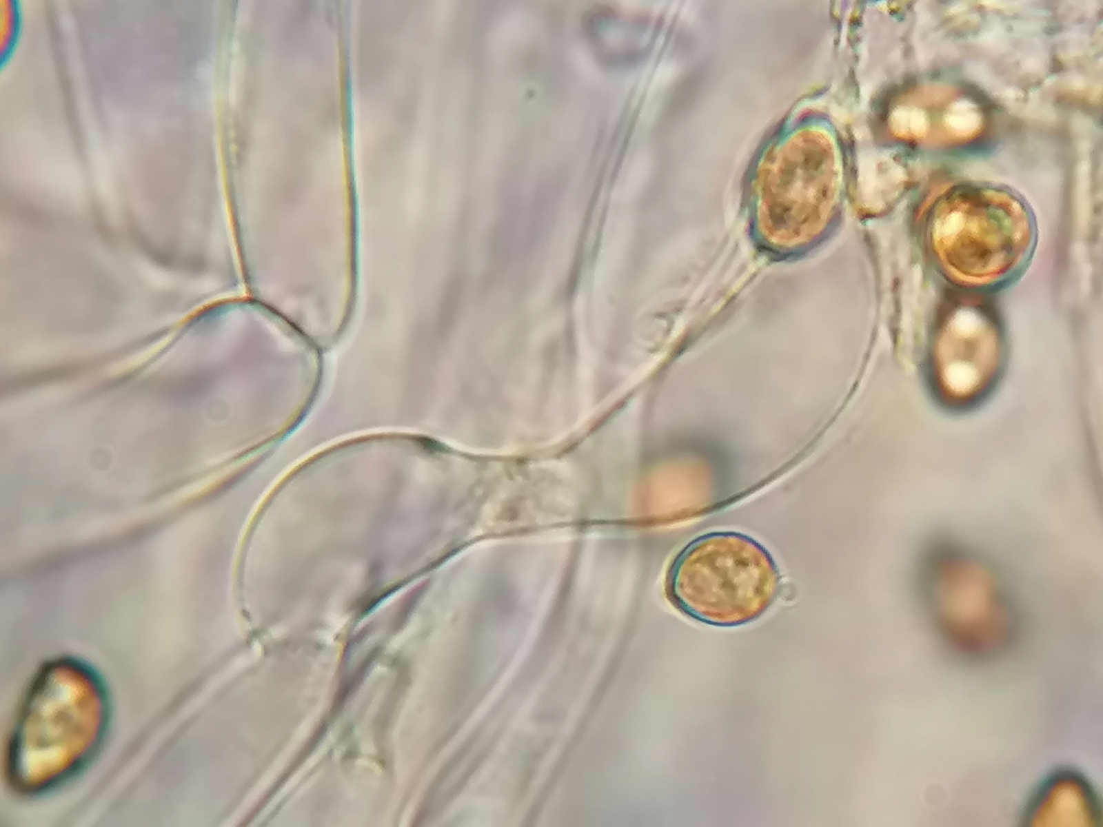 Aaaaahhh! Selbst unterm Mikro hat der mich gefoppt. Die Sporen sind so winzig, dass ich sie kaum sehen konnte.