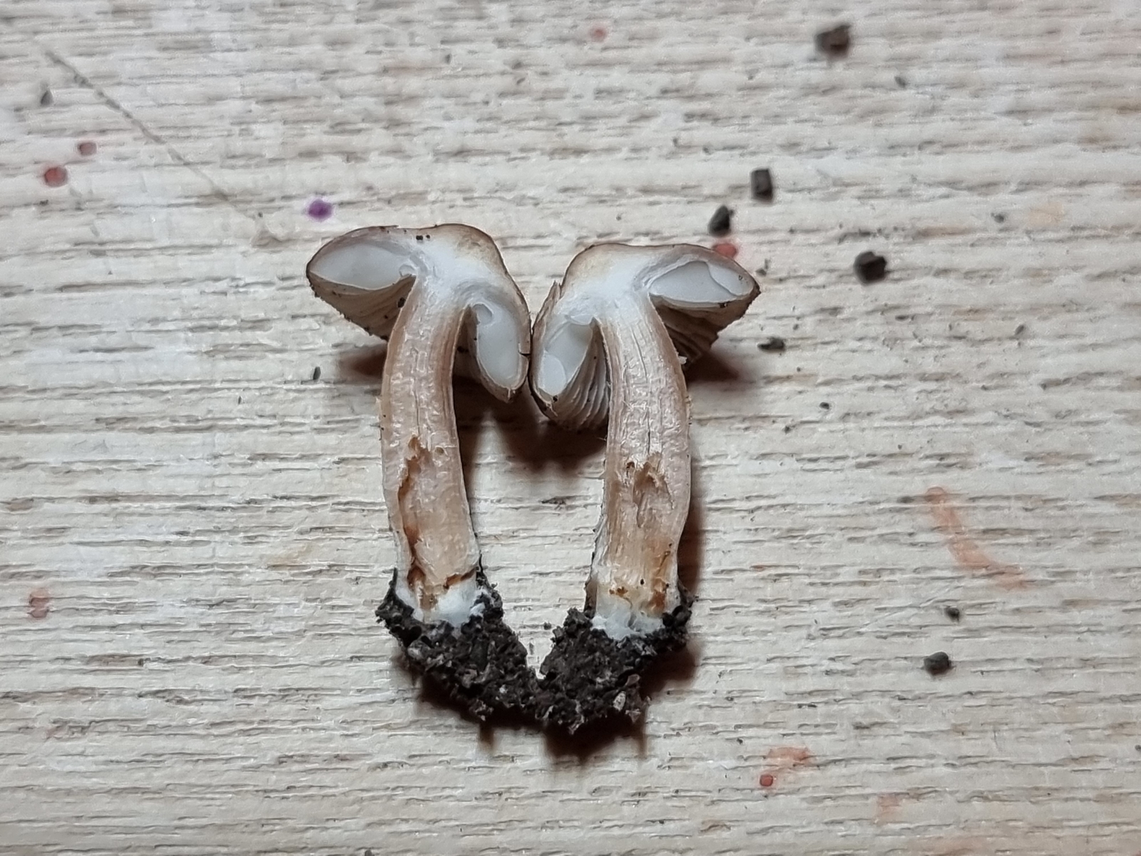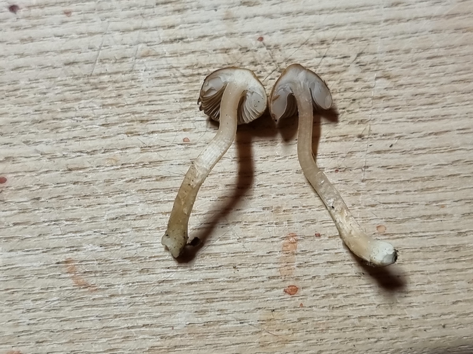 Auch diese Fruchtkörper sind sehr klein, kaum über 1 cm Hutdurchmesser. Aber insgesamt schlanker im Habitus.