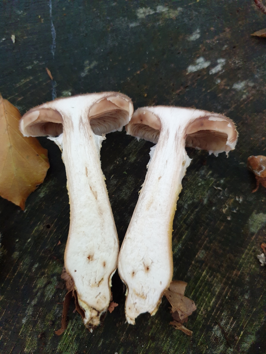 Kann man hier makroskopisch die Art bestimmen? Meine Vermutung war der Zwiebelfüßige Hallimasch (Armillaria cepistipes), aber ich frage lieber die Experten. ![]()