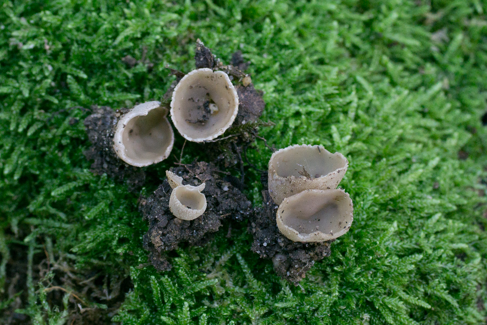 Die zwei ist ziemlich sicher einer der Napfbecherlinge (Tarzetta), vielleicht catinus oder cupularis?