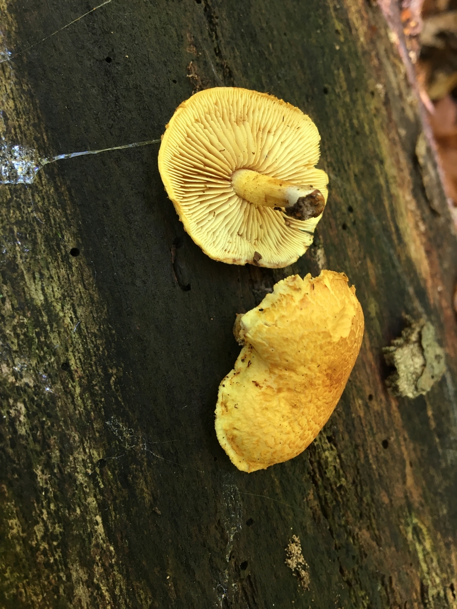 Die Pilze hatten einen Durchmesser von ca. 3 cm und wuchsen auf einem liegenden Buchenstamm.