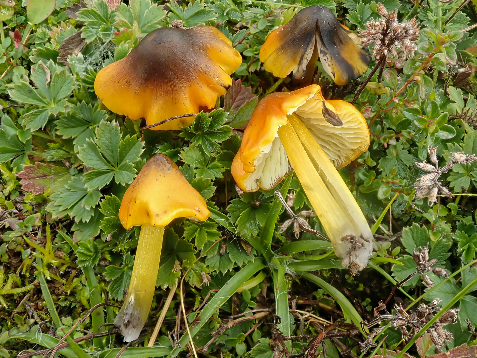 Gleich nach den ersten Schritten begrüßten uns Dattelbraune Ellerlinge (Cuphophyllus colemannianus).