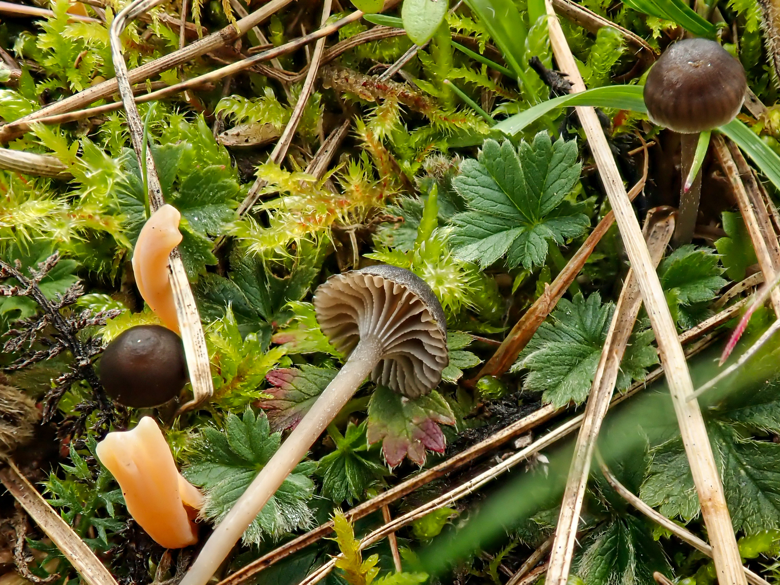 Die folgenden Saftlinge, die sich da unter dem Kleinen Habichtskraut hervorkämpfen, sind nur anhand des Fotos schwieriger zu beurteilen, Hygrocybe coccinea halte ich aber für gut möglich. Hygrocybe cantharellus (wie von Claudia vorgeschlagen) möchte ich ausschließen.