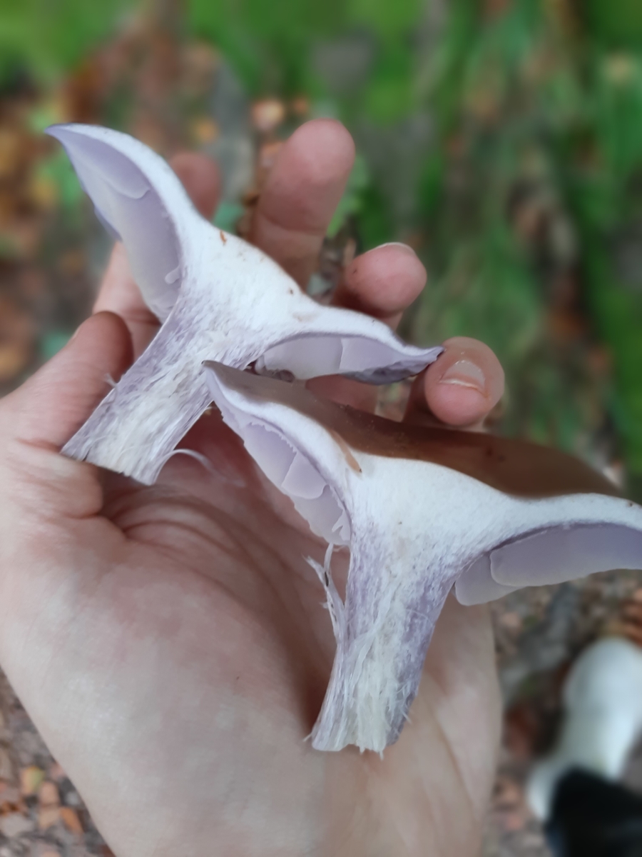 Hi, der erste sieht nach violettem rötelritterling (lepista nuda) aus, oder zumindest was aus dem bereich. Lamellen müsste man vom hut gut mit den fingern lösen können und geruch sollte in etwa nach multivitaminsaft sein.