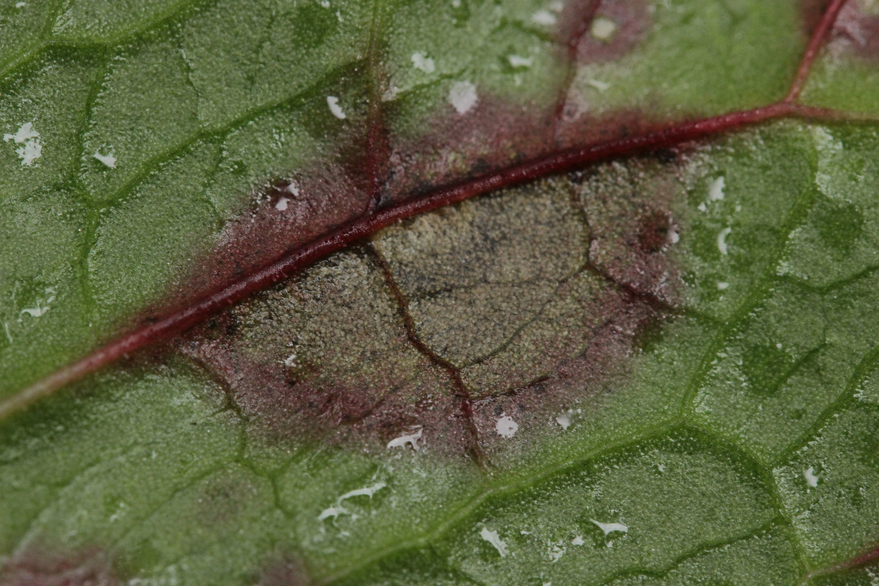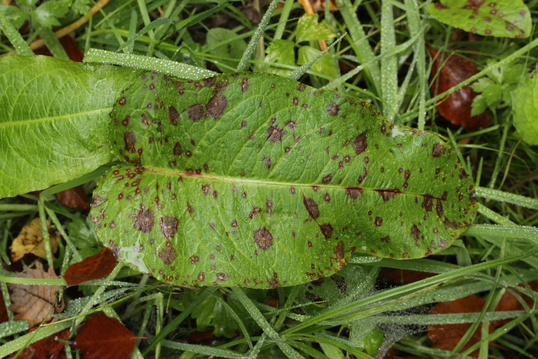 11. Ramularia auf Rumex obtusifolius. Mit den eiförmigen Konidien ist das Ramularia rubella. Interessanterweise war da aber auch noch etwas mit zylindrischen Konidien auf dem gleichen Blatt....