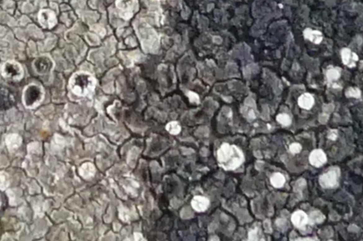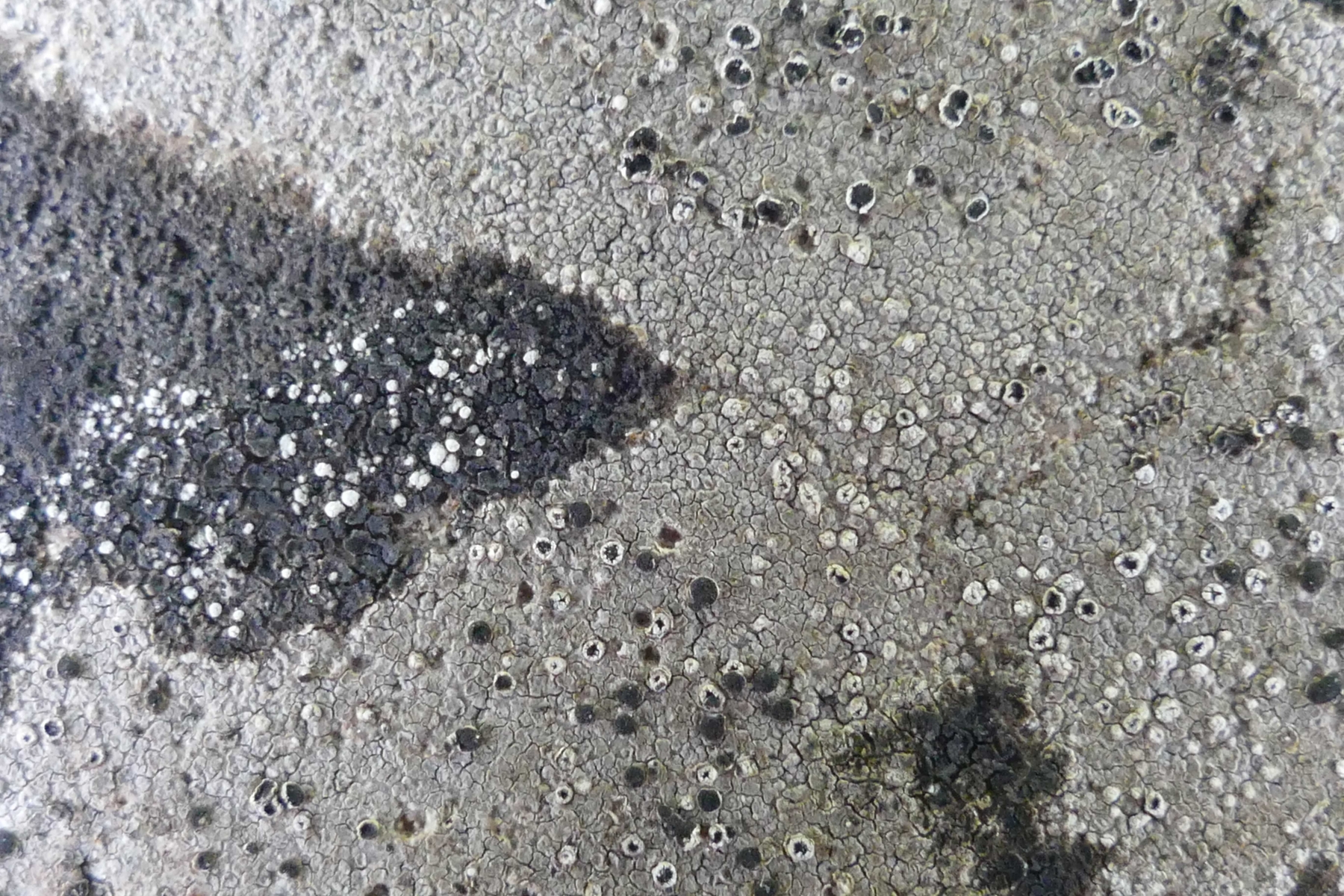 Dem schwarzen Randbereich sitzen teilweise weiße Knubbel auf. Eine andere Flechte?