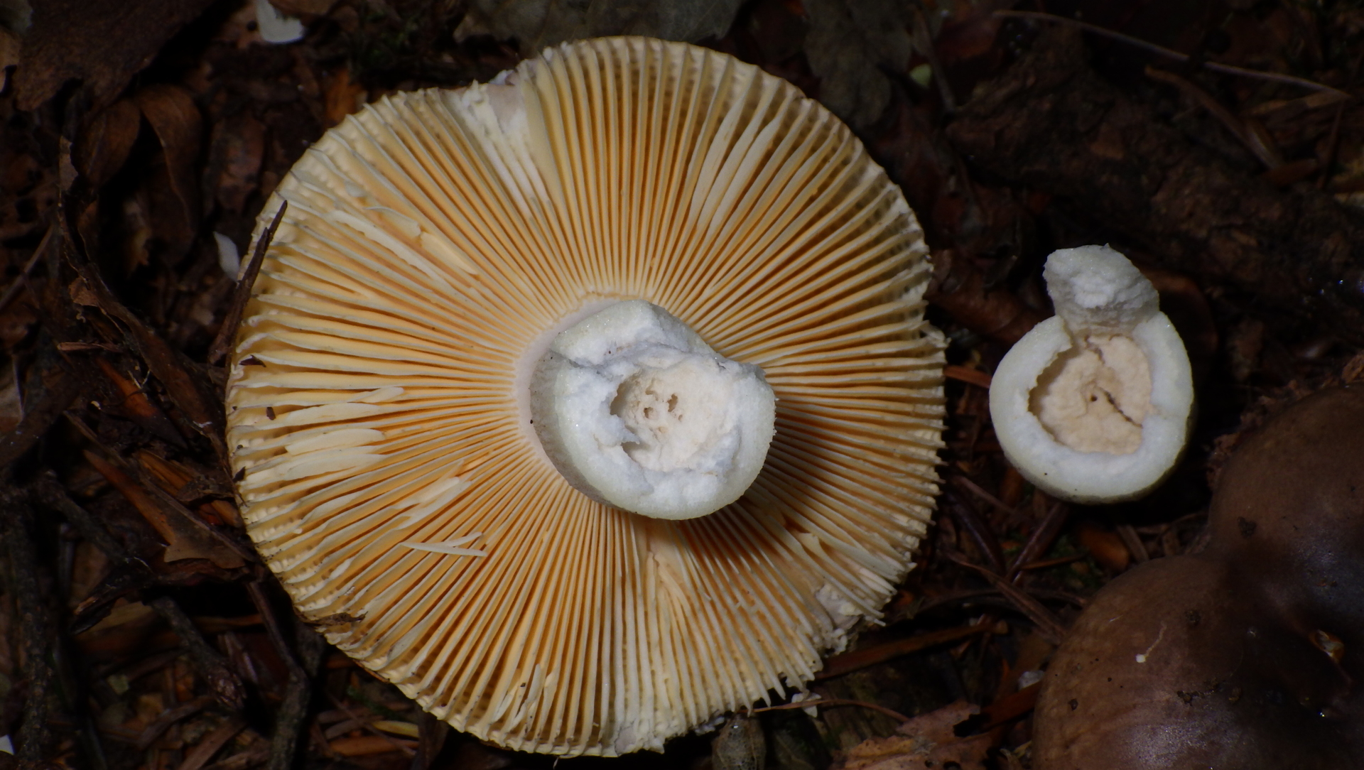 5) Palisander-Täubling, Kleiner Ledertäubling?? Geschmacksprobe war mild, Lamellen brüchig, Stiel brüchig und hohl