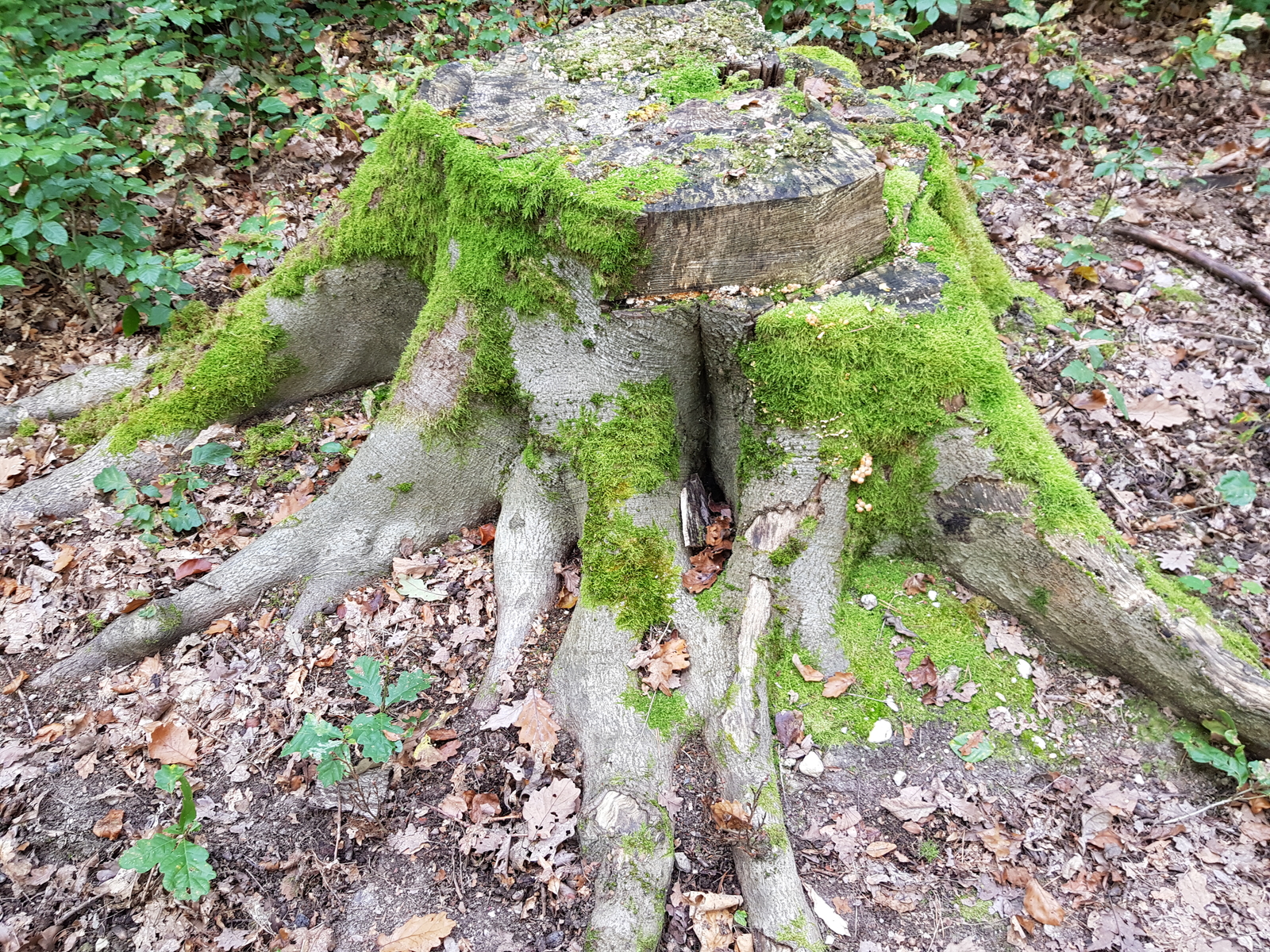 Gewachsen sind sie im Eichenwald; der Stumpf scheint aber der einer Buche zu sein. Oder wachsen die nur in Moos?