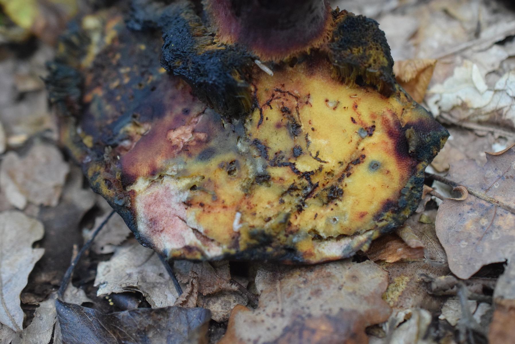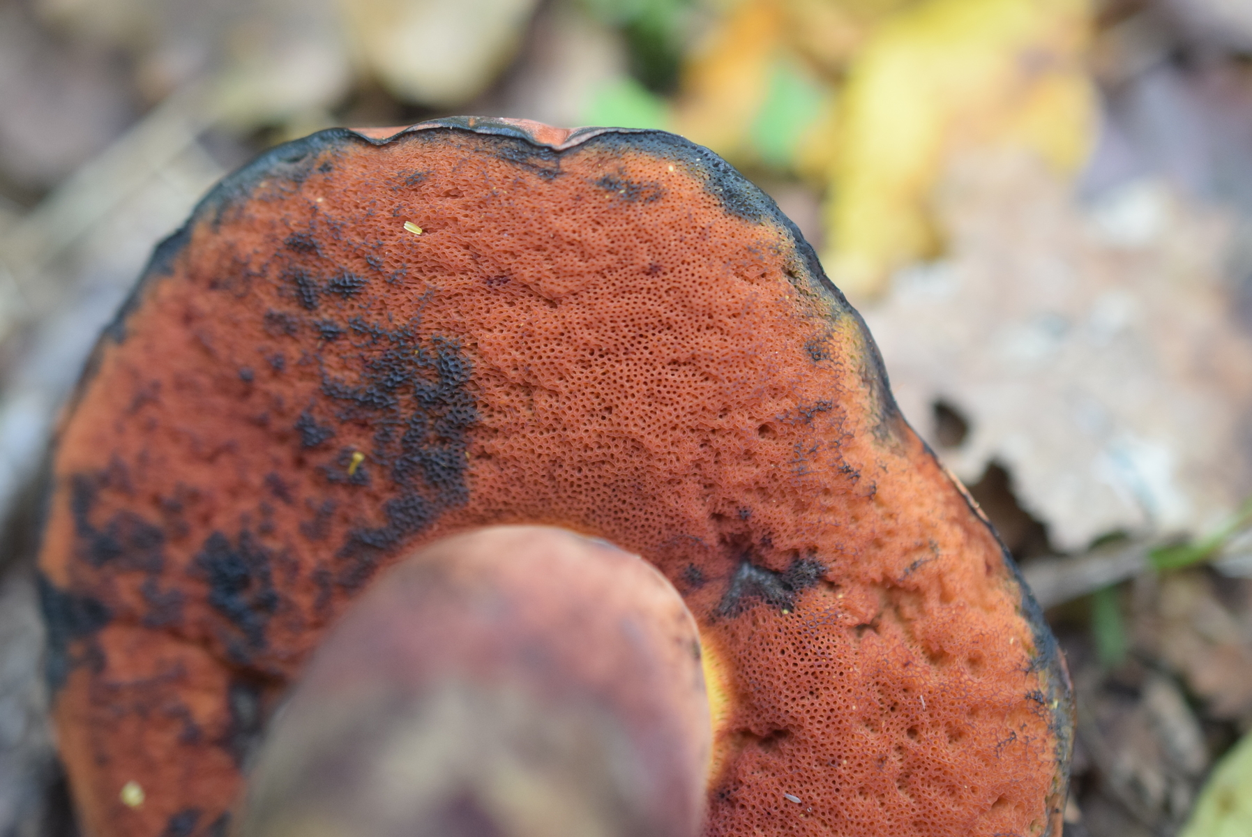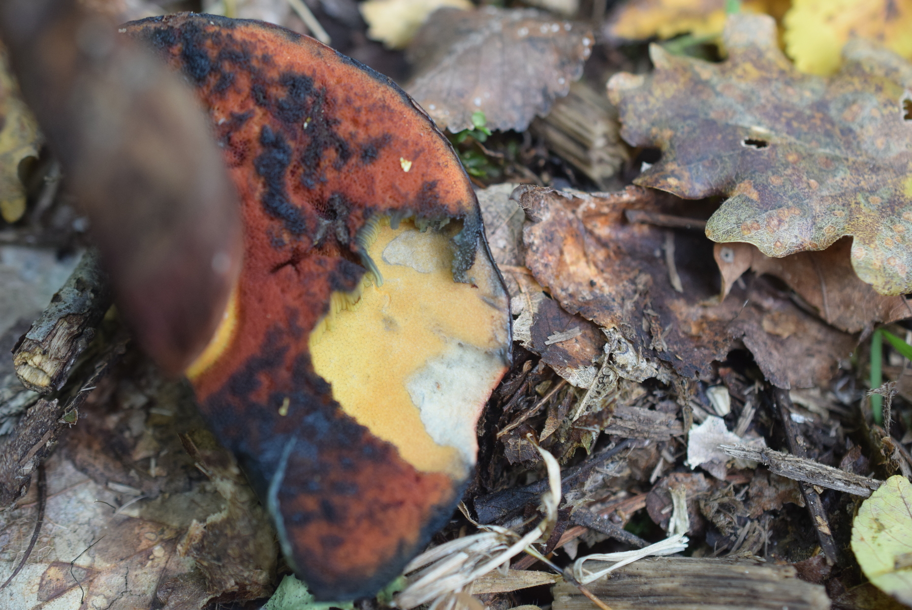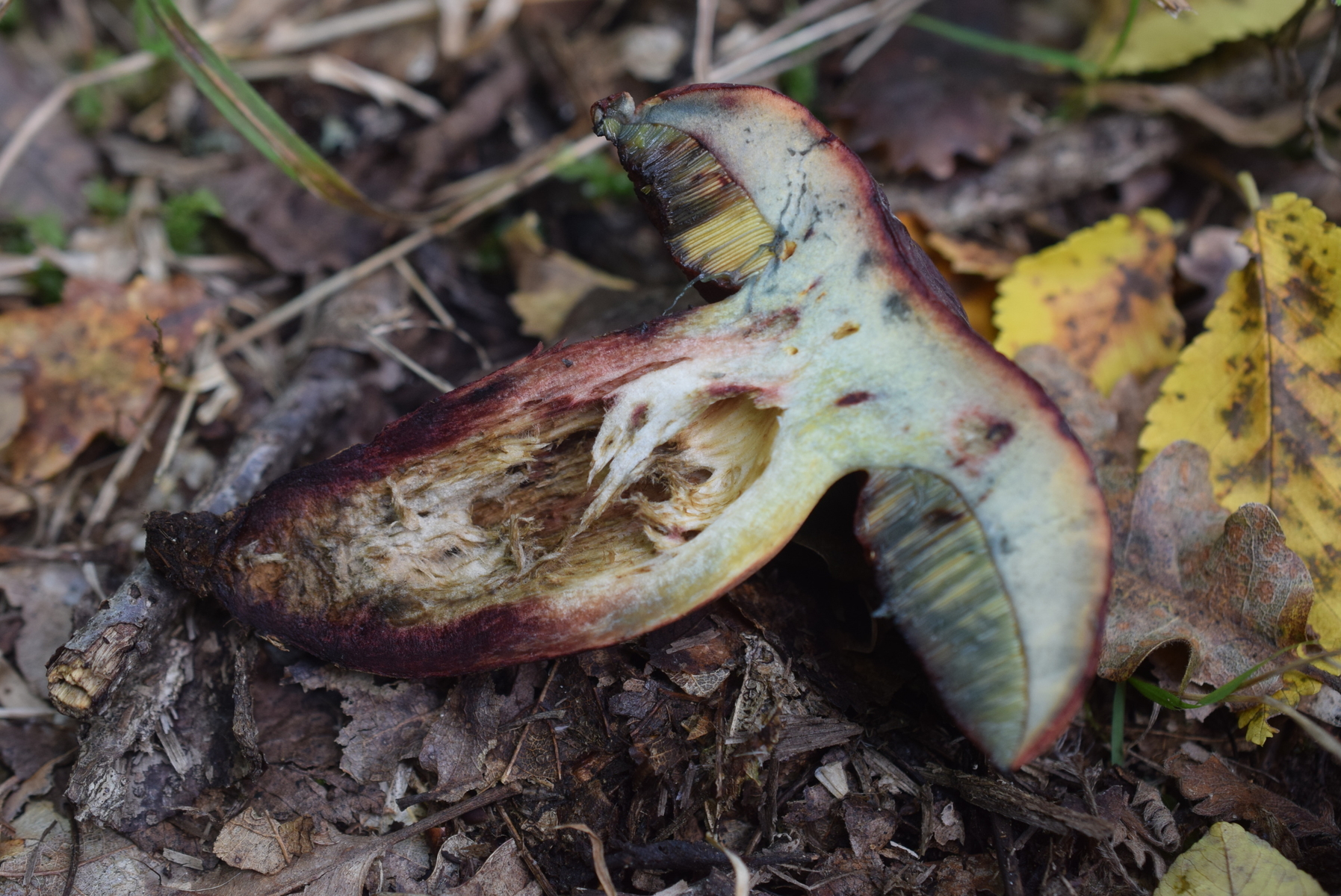 Röhrenboden , gleich nach Schnitt orangegelb später mehr gelblich