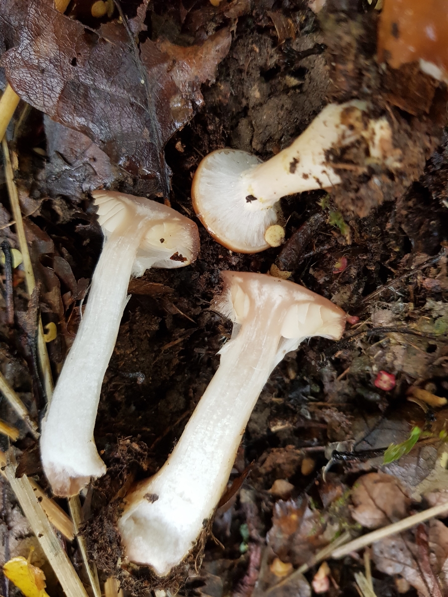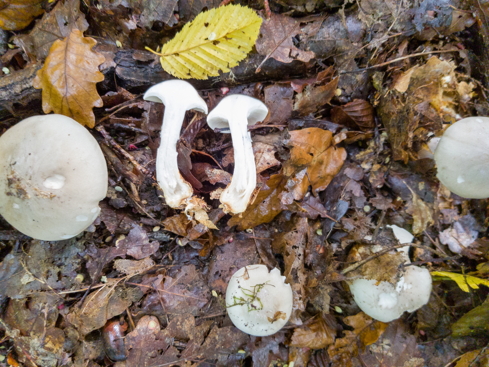 Auch habe ich die beiden unbekannten Pilzen 2.) und 3.) mit nach Hause genommen, um nochmals daran zu riechen (nichts neues) und einen Sporenabwurf zu erhalten. Es hatte den ganzen Vormittag geregnet. Alle Pilze waren putsch nass.