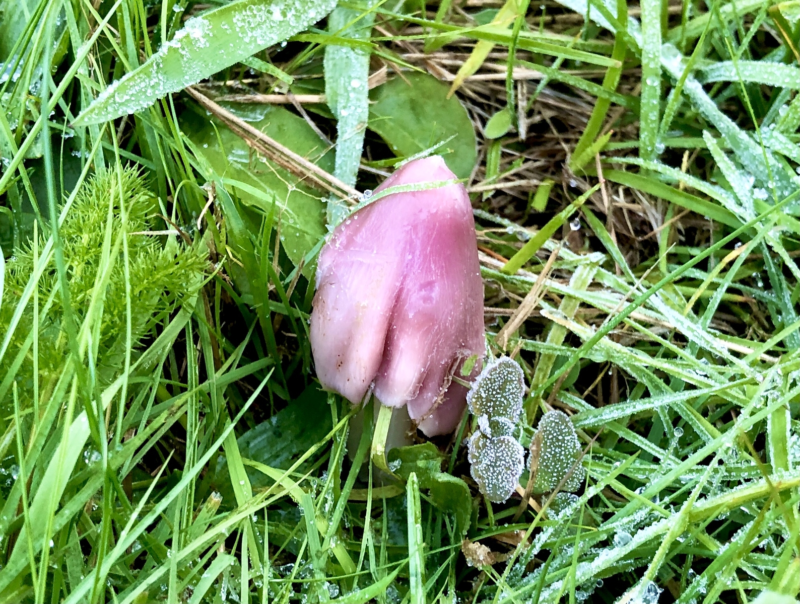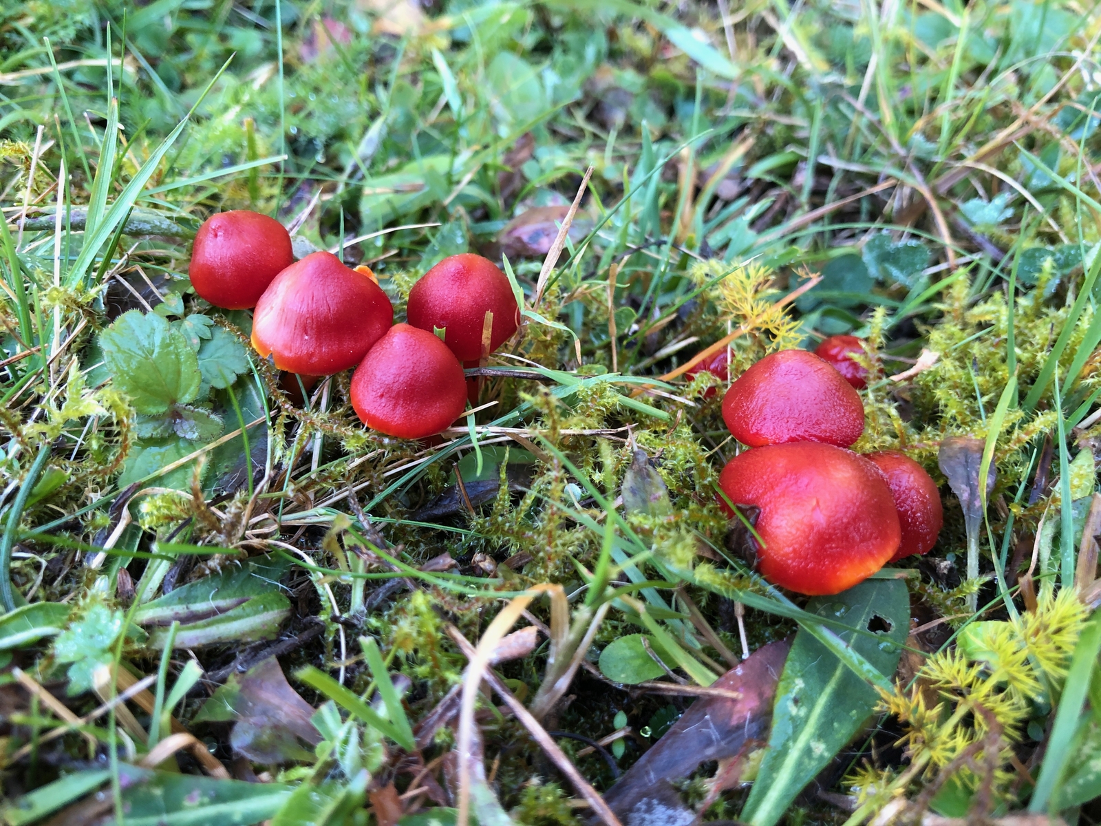 12. Wenn ich mich recht erinnere H. insipida, der Rotspitzige Saftling. Pilz nur von oben... zu meiner Entschuldigung - das Handy war fast leer.