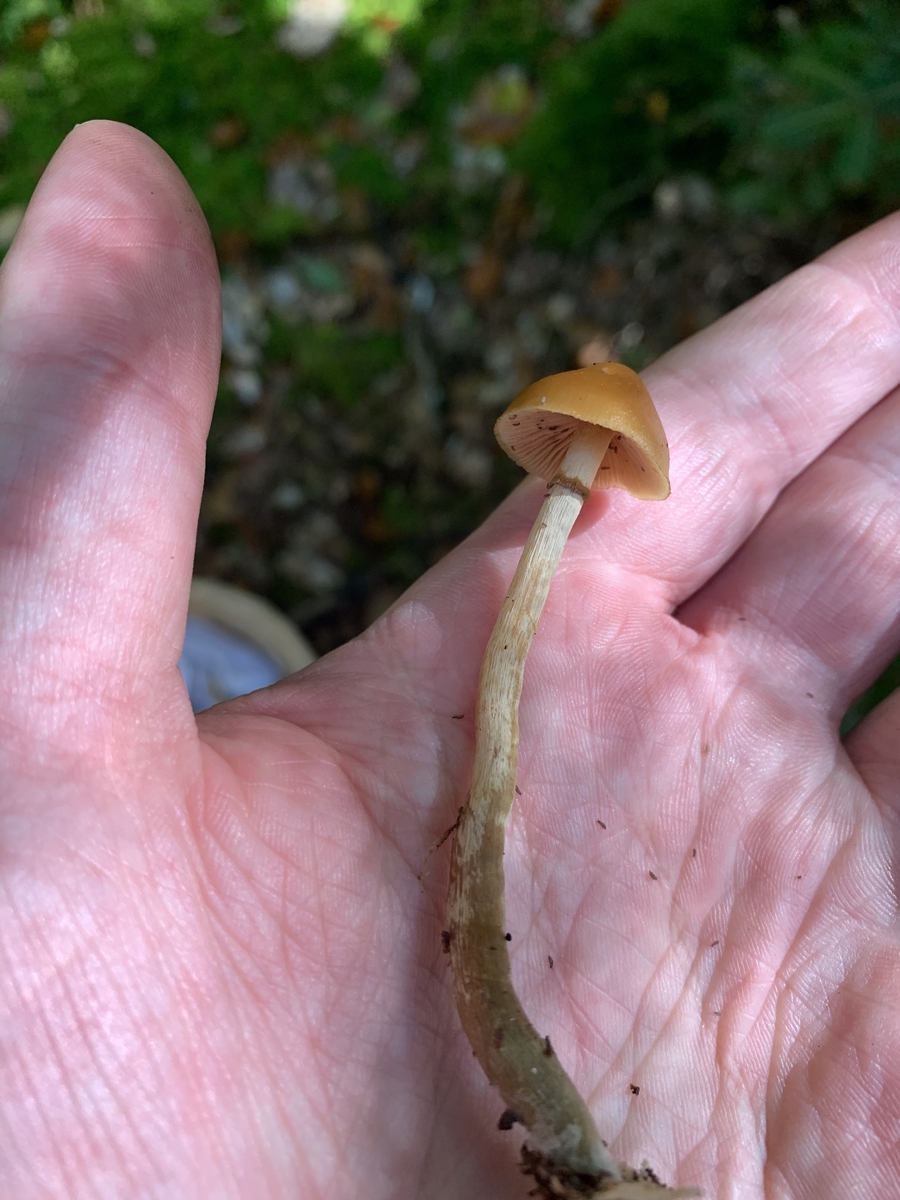 Naja gut ganz so war es nicht, ich hab schon erkannt dass da was nicht stimmt als ich danach gegriffen habe und dann das große Foto gemacht (der Pilz ist ganz unten) aber ich denke das veranschaulicht nochmal dass man auch mit dem Kopf bei der Sache bleiben sollte wenn man Pilze sammelt. Ich meine wer denkt beim Sammeln von Trompetenpfifferlingen schon an Gifthäublinge? Klar sollte man die nie nie nie verwechseln können aber wenn man sich nach langem Sammeln zu sehr in Sicherheit wiegt und das Lied auf den Kopfhörern mitsingt kann sowas ganz geistesabwesend mal im Körbchen landen. Einfach die Augen aufhalten hilft da.