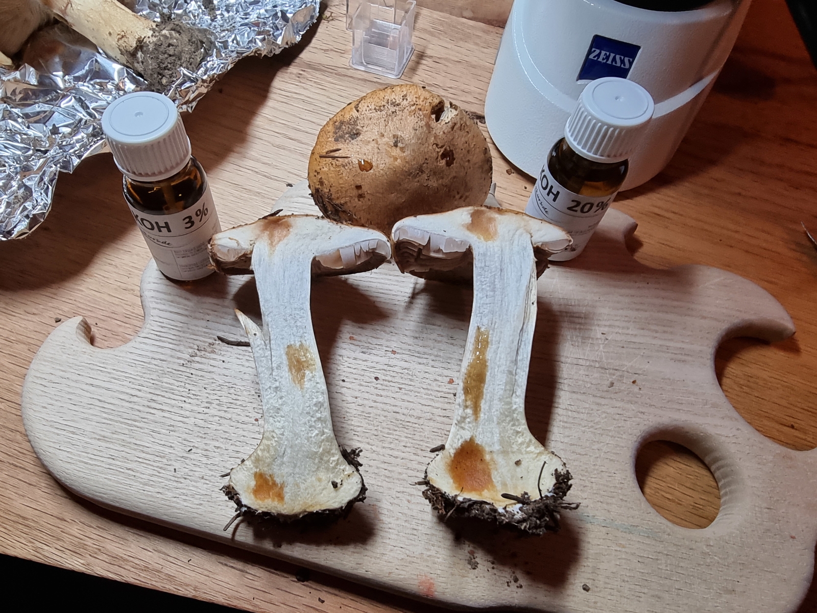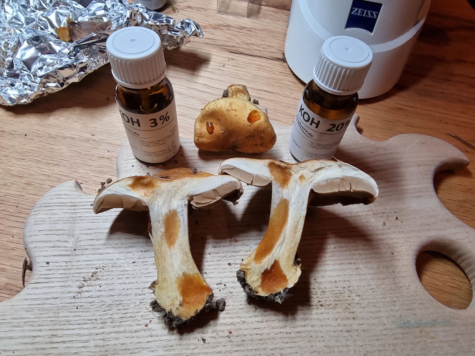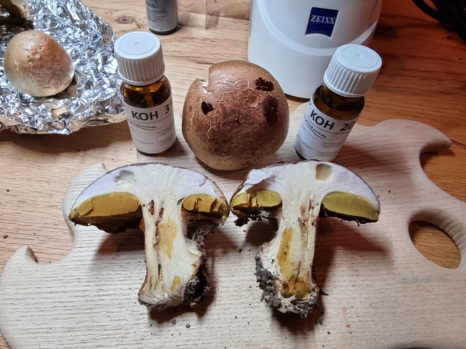 KOH auf Hut rotbraun, im Fleisch überall gelbbraun