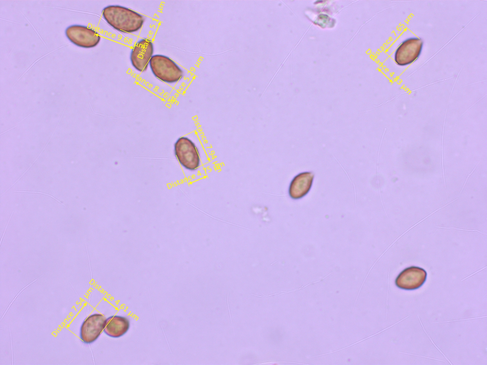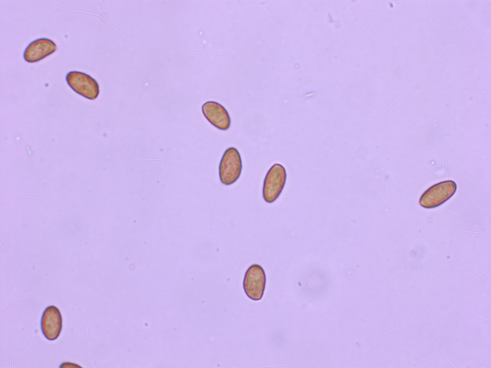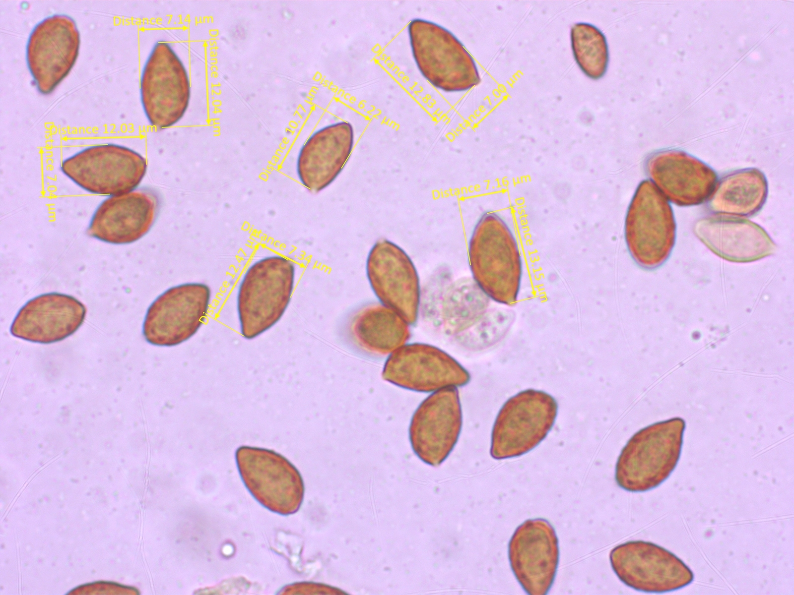 Sporen klein, um 7.5-9.5 x 4.5-5.5 µm, Q = 1.5-1.9