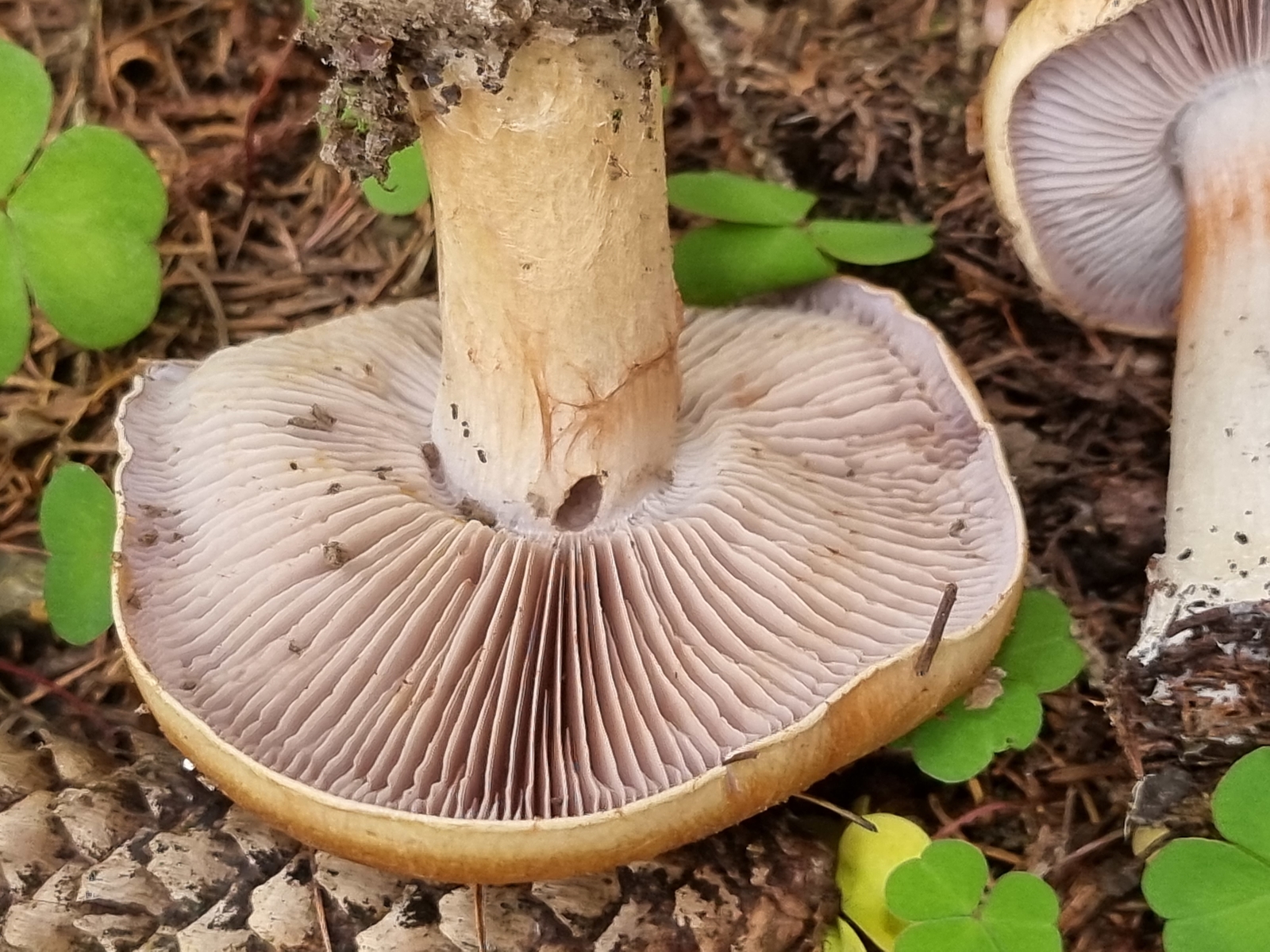 Fleisch im Hut biolettlich, im Stiel blassgelb.