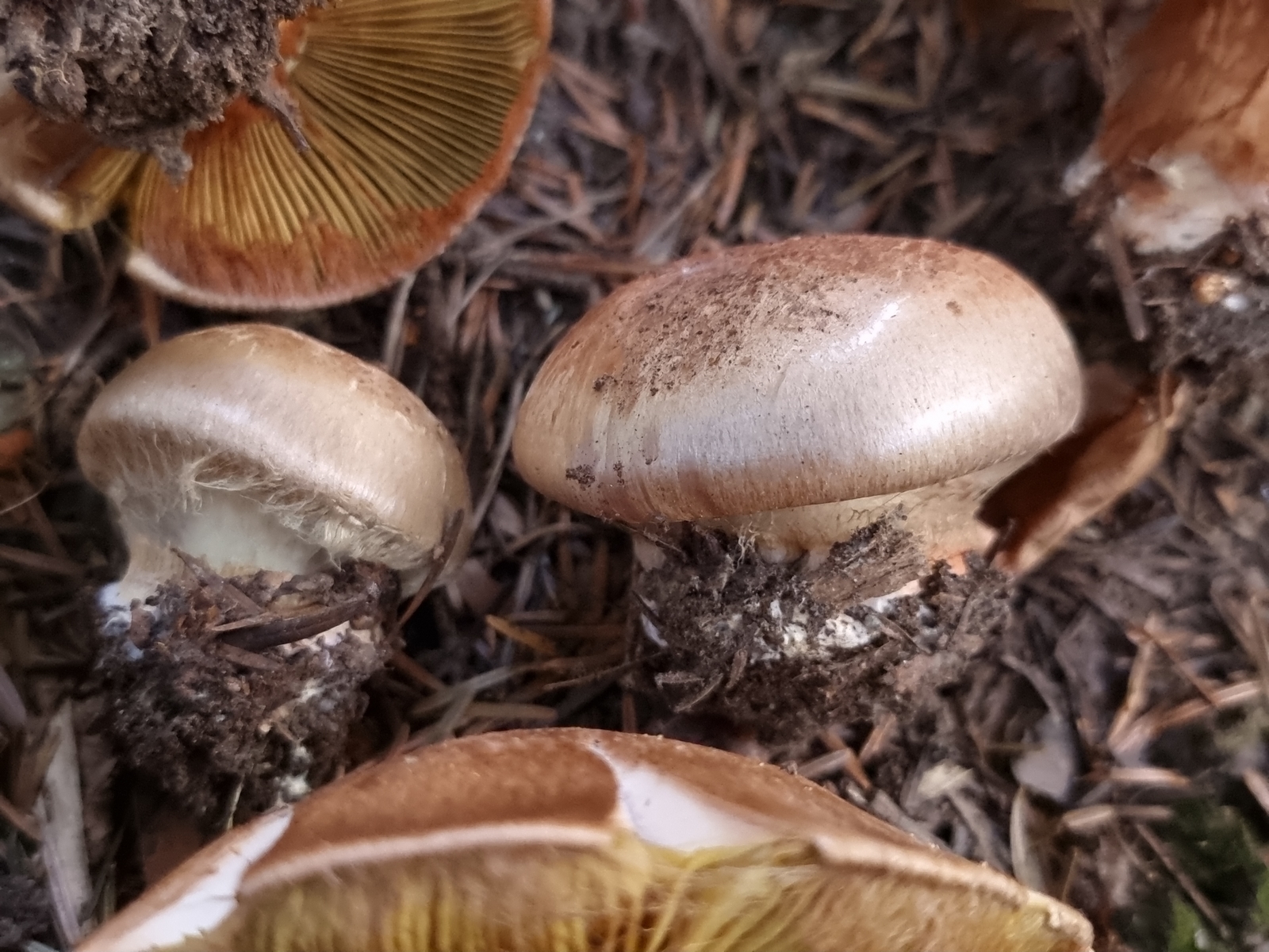 Gleiche Lamellenfarbe, Hut aber deutlich lebhafter gefärbt. Ich dachte da zuerst eher an C. varius.