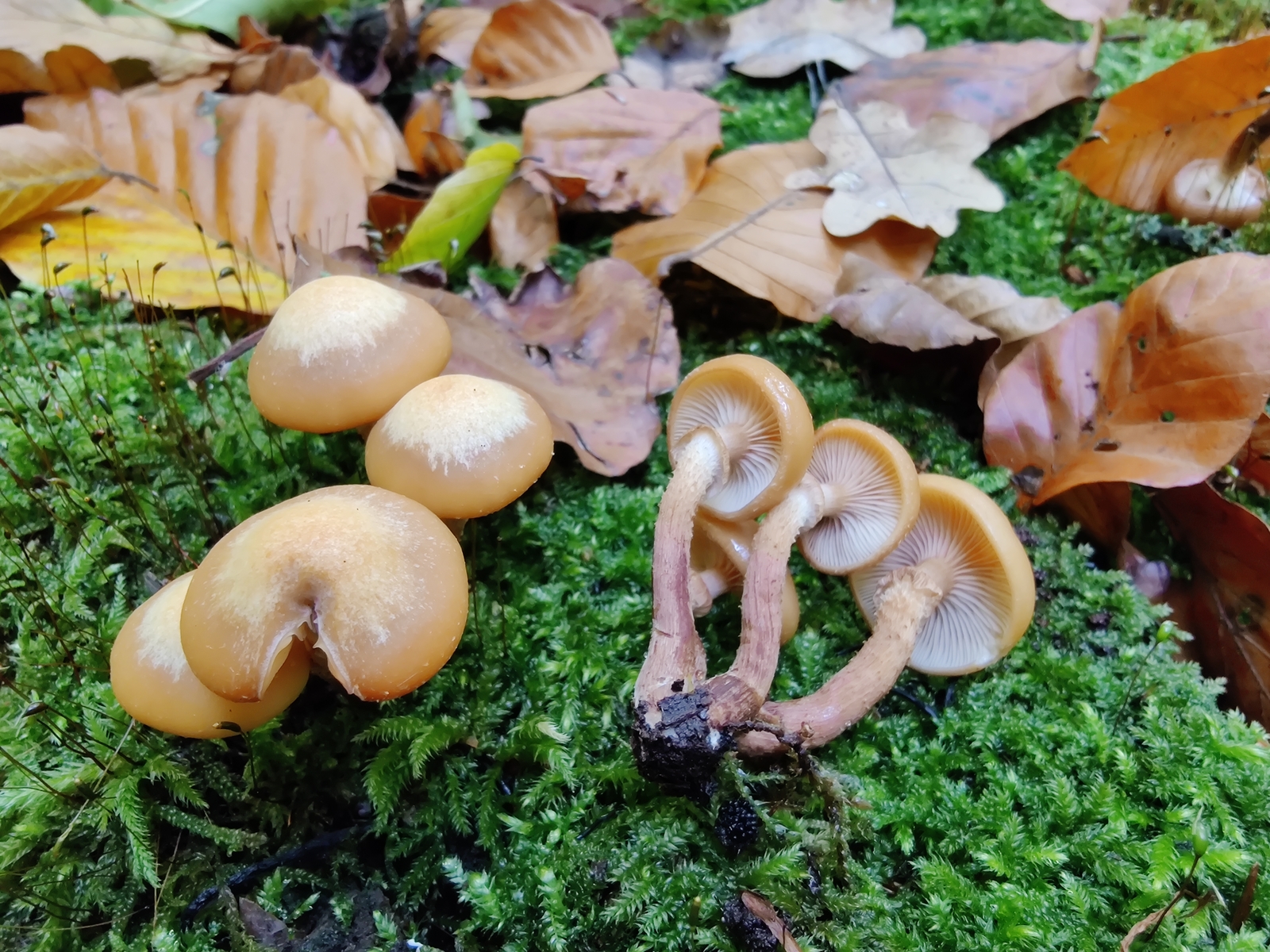 heute konnte ich endlich mal Stockschwämmchen (Kuehneromyces mutabilis) und Gifthäubling (Galerina marginata) in natura miteinander vergleichen.
