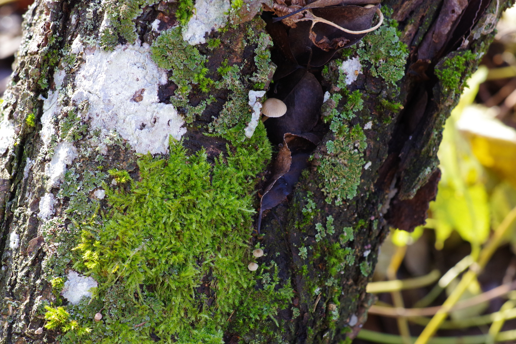 3) etwas an Moos, das ein Moosbecher sein könnte. Leider nur ein Einzelstück. Während das Moos wahrscheinlich O. affine ist, jedenfalls gibt es das an dem Stamm viel in typischer Ausprägung. Naheliegend wäre dann der lange gesuchte Octospora affinis - nur sollte der doch orange sein?