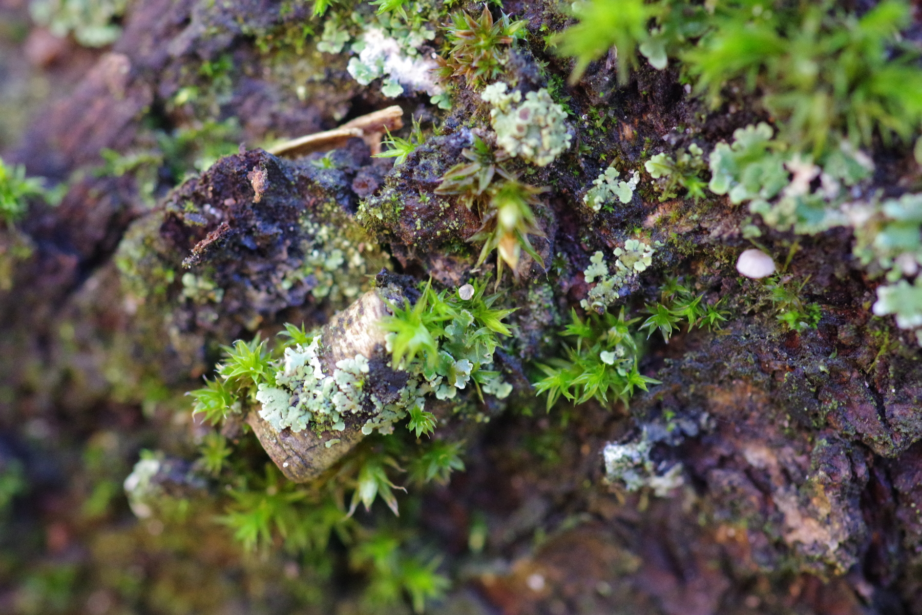 3) etwas an Moos, das ein Moosbecher sein könnte. Leider nur ein Einzelstück. Während das Moos wahrscheinlich O. affine ist, jedenfalls gibt es das an dem Stamm viel in typischer Ausprägung. Naheliegend wäre dann der lange gesuchte Octospora affinis - nur sollte der doch orange sein?