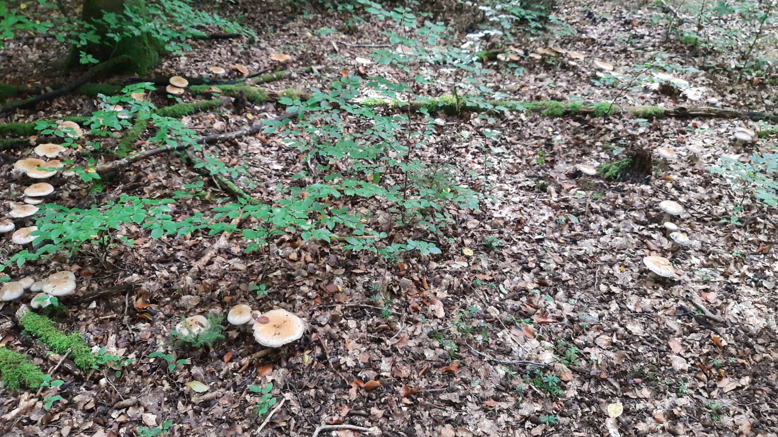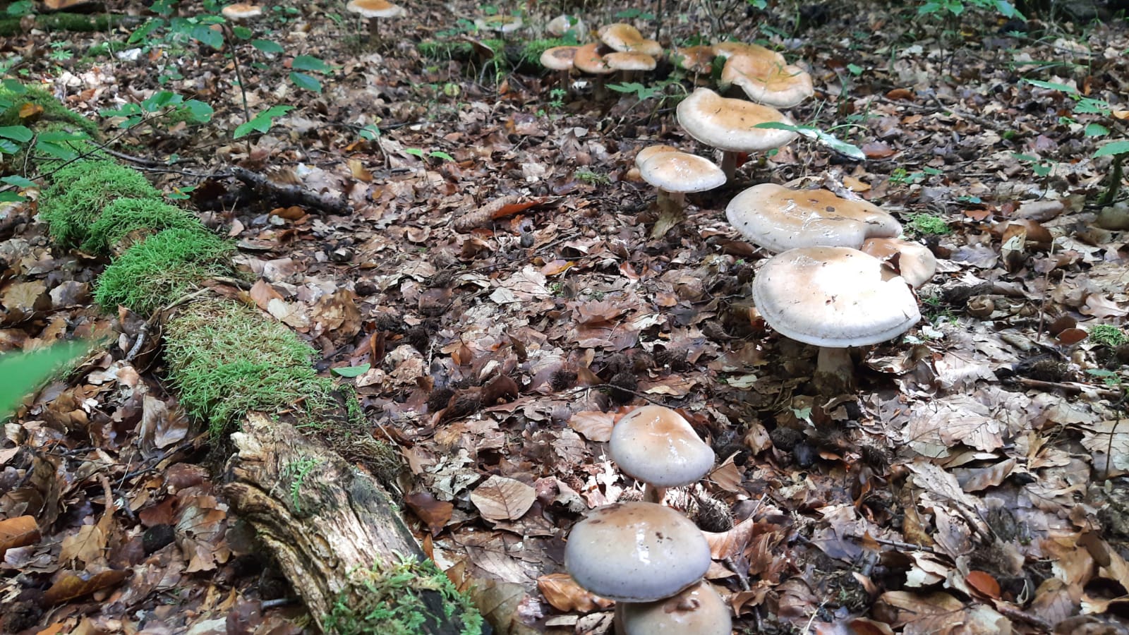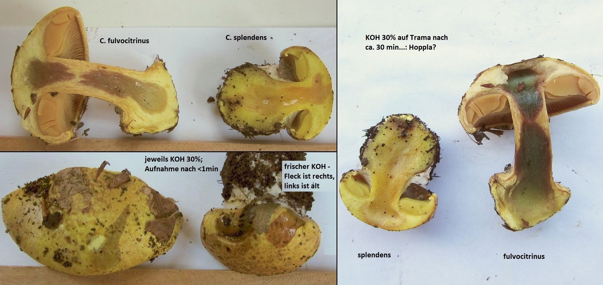 Manchmal sogar fast in Form brauchbarer Kollektionen. Aber Obacht: Ein Mycel bildet zwar gerne seine Fruchtkörper in einer bestimmten Anordnung (Kreise, Bögen, Linien, Fächer). Doch wenn man sowas in diesem Jahr findet (in dem Fall einen kleinen "Fruchtkörperbogen"), könnte unter Umständen was nicht stimmen, da eine Kollektion von mehr als drei Fruchtkörpern aus einem Phlegmacien - Mycel eine absolute Rarität zu sein scheint (mit wenigen Ausnahmen).