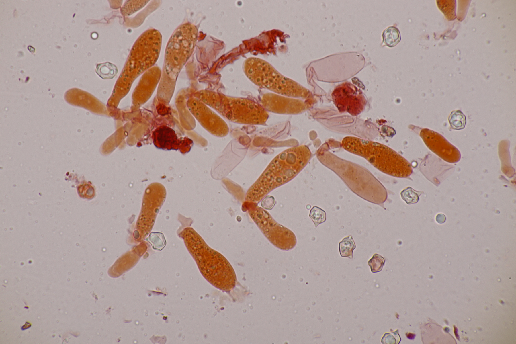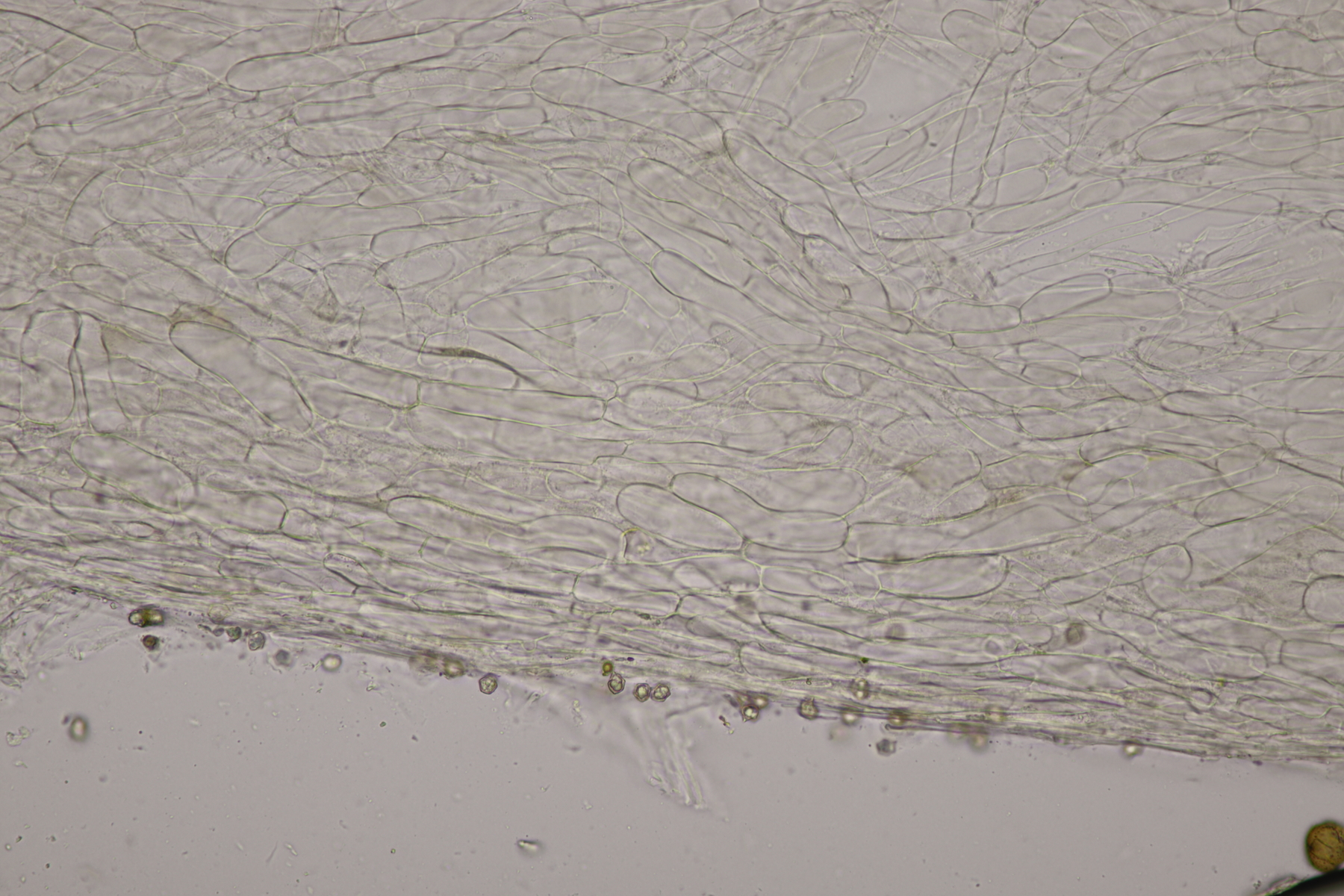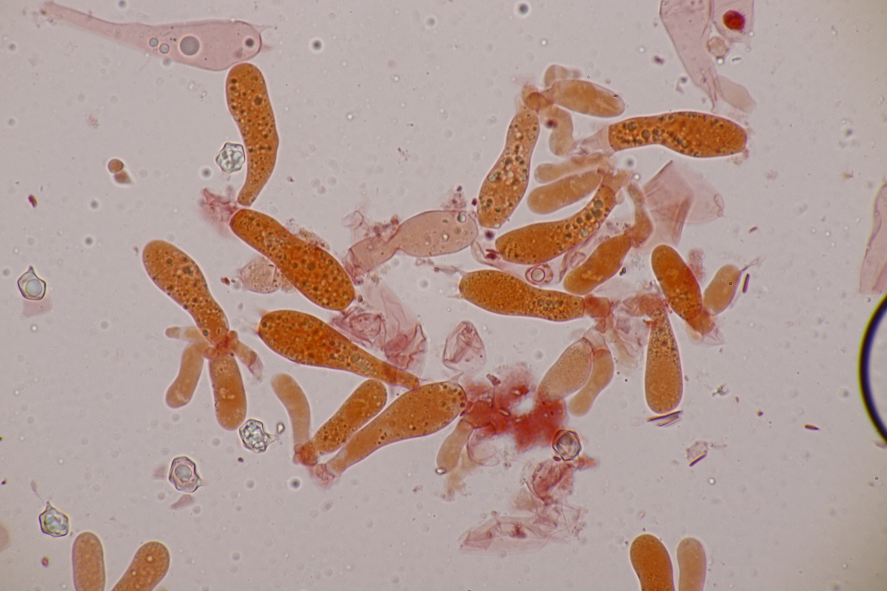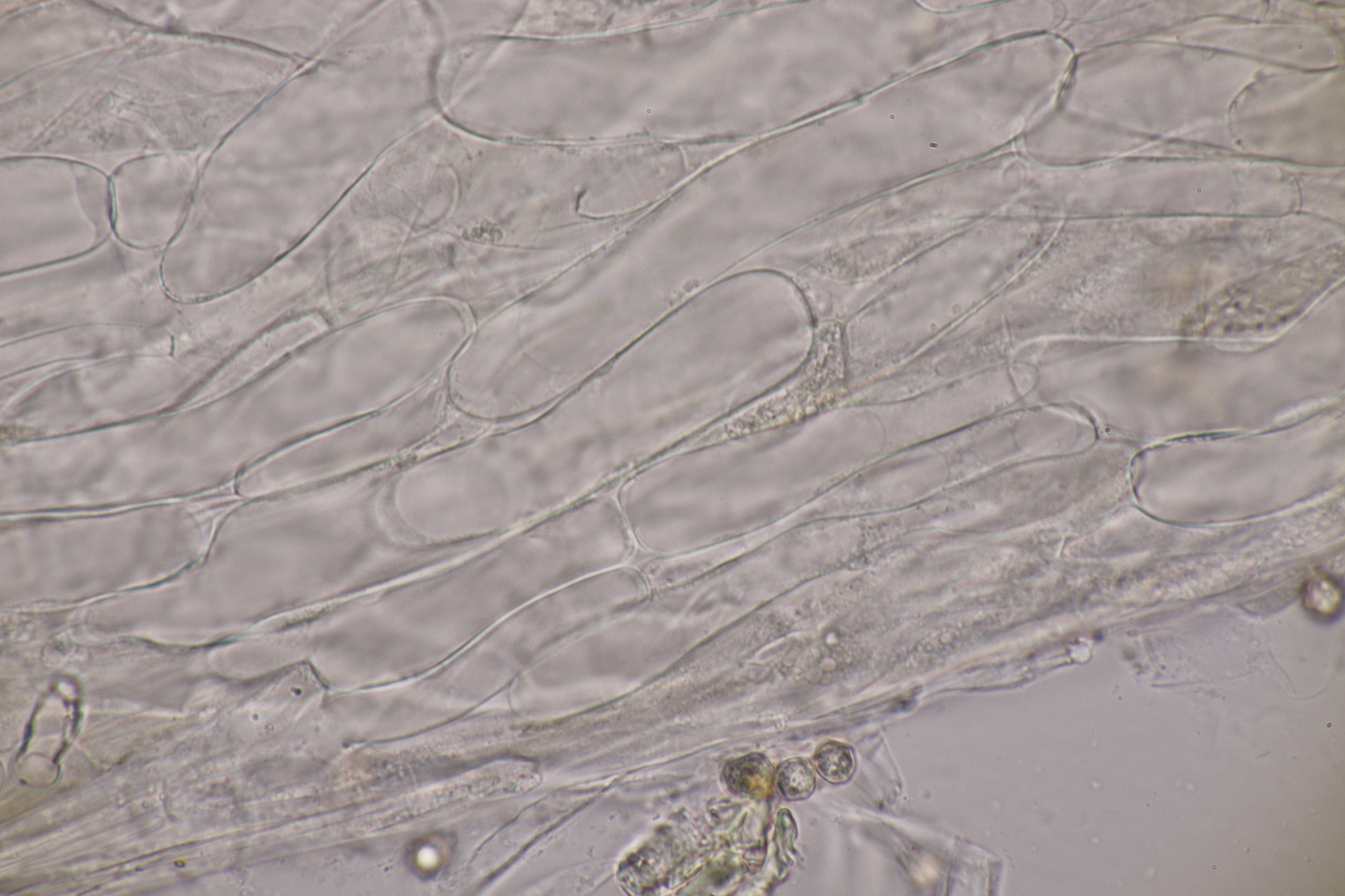 10. Eine Entoloma im Rasen unter Populus ohne besonderen Geruch. Basidien 4-sporig mit Basalschnalle, Lamellentrama mit Schnallen, keine Zystiden, Huthaut mit intrazellulärem Pigment und Schnallen, Sporen 9.0-11.0 x 6.6-8.9, Q=1.1-1.5, 9.8 x 7.5, Q=1.3. So wirklich komme ich da nicht zu einem Ergebnis und bin mir schon Erschlüsseln des richtigen Schlüssels in der Funga Nordica unsicher. Eventuell Entoloma rhodopolium?