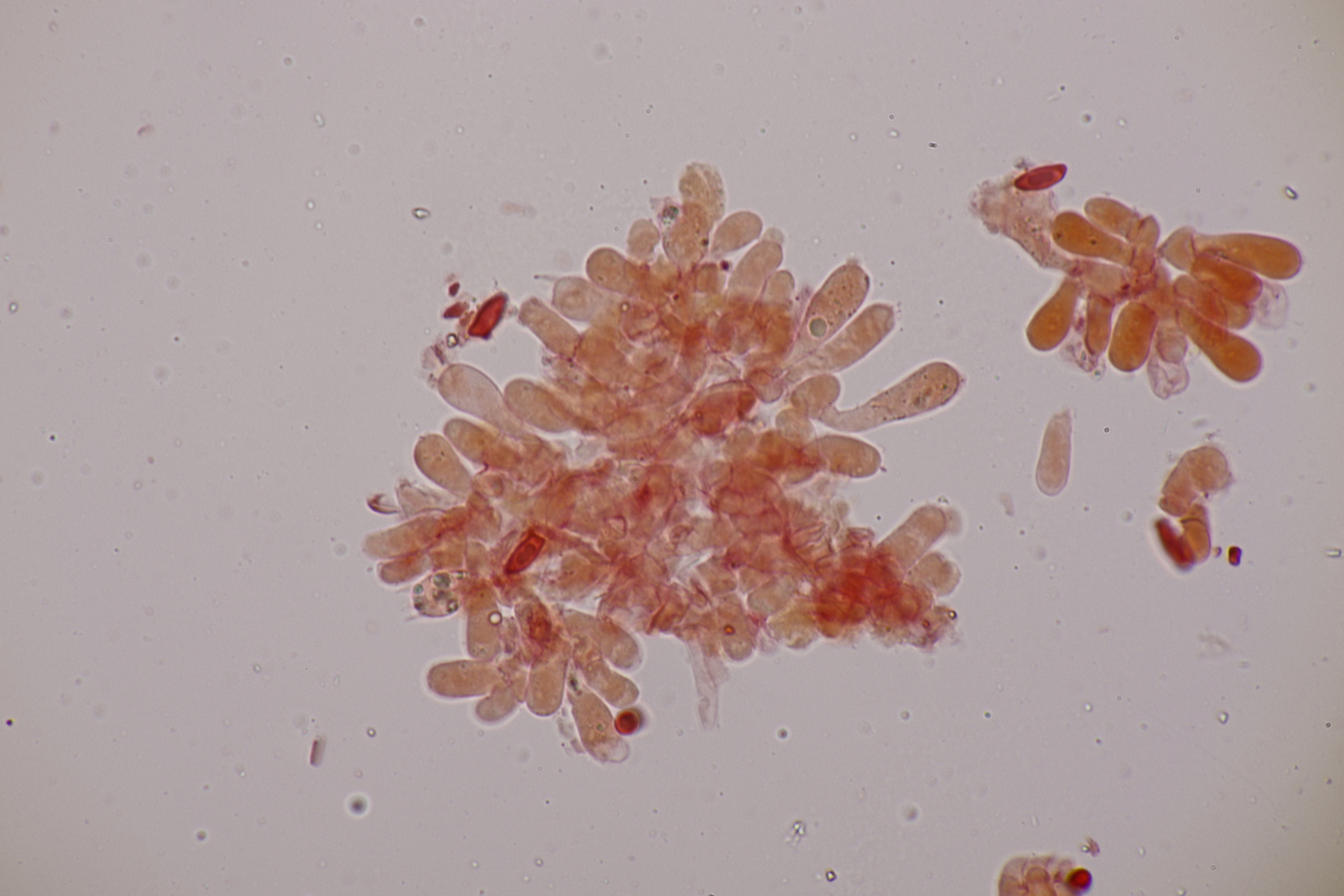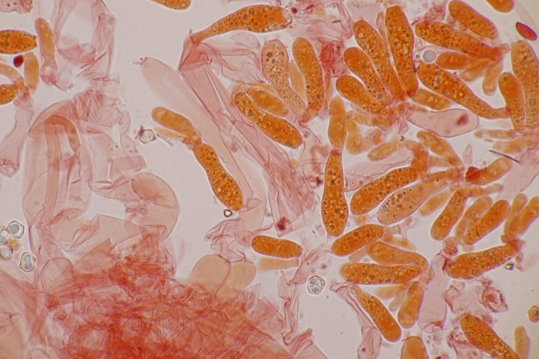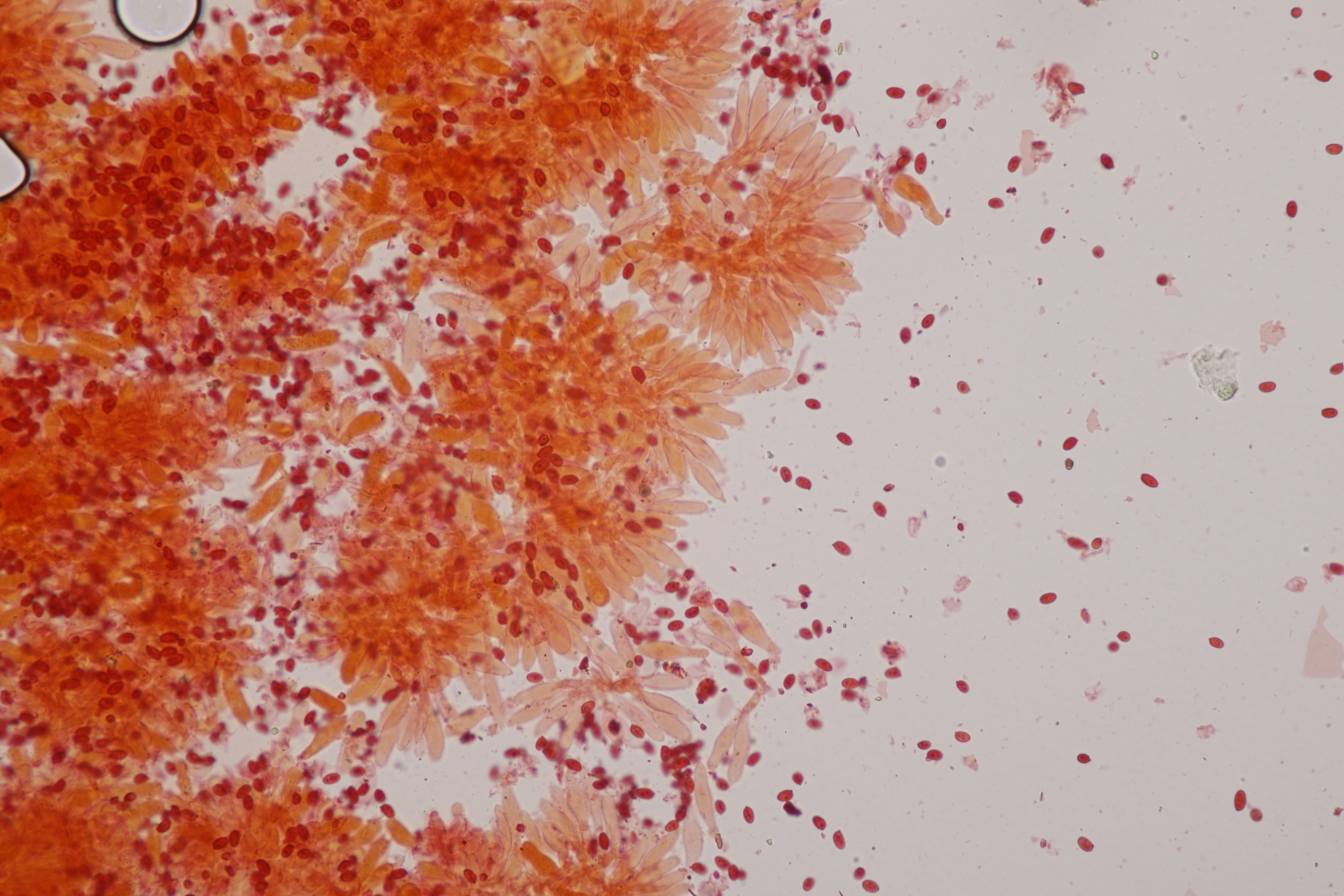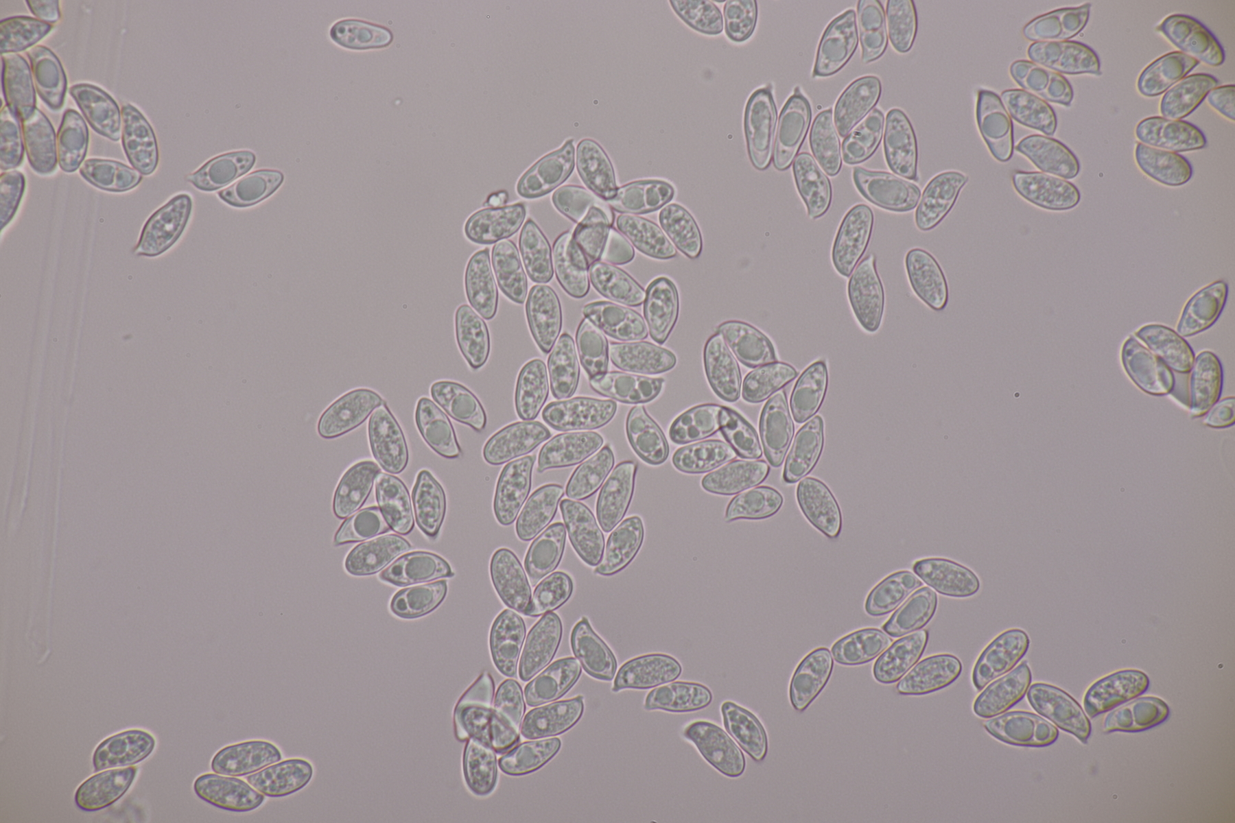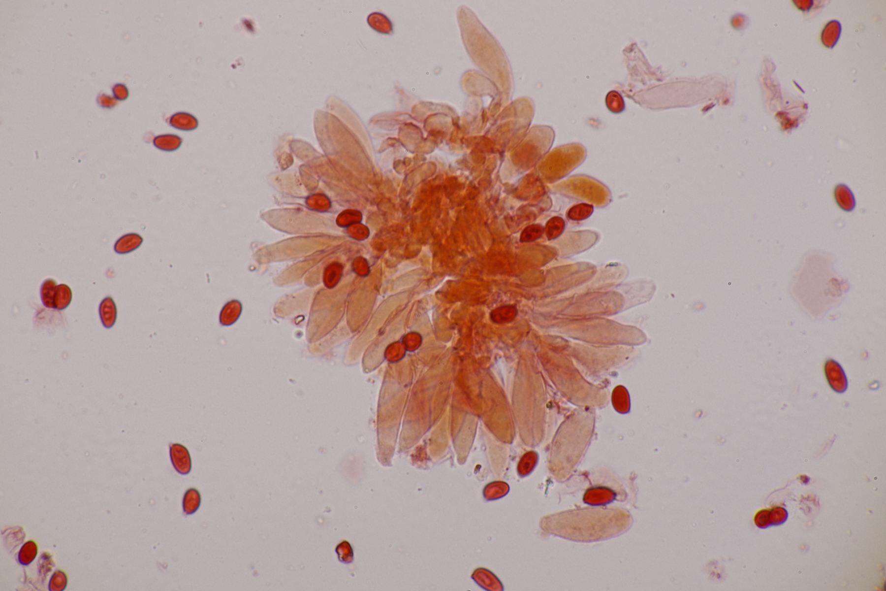 10. Eine Entoloma im Rasen unter Populus ohne besonderen Geruch. Basidien 4-sporig mit Basalschnalle, Lamellentrama mit Schnallen, keine Zystiden, Huthaut mit intrazellulärem Pigment und Schnallen, Sporen 9.0-11.0 x 6.6-8.9, Q=1.1-1.5, 9.8 x 7.5, Q=1.3. So wirklich komme ich da nicht zu einem Ergebnis und bin mir schon Erschlüsseln des richtigen Schlüssels in der Funga Nordica unsicher. Eventuell Entoloma rhodopolium?