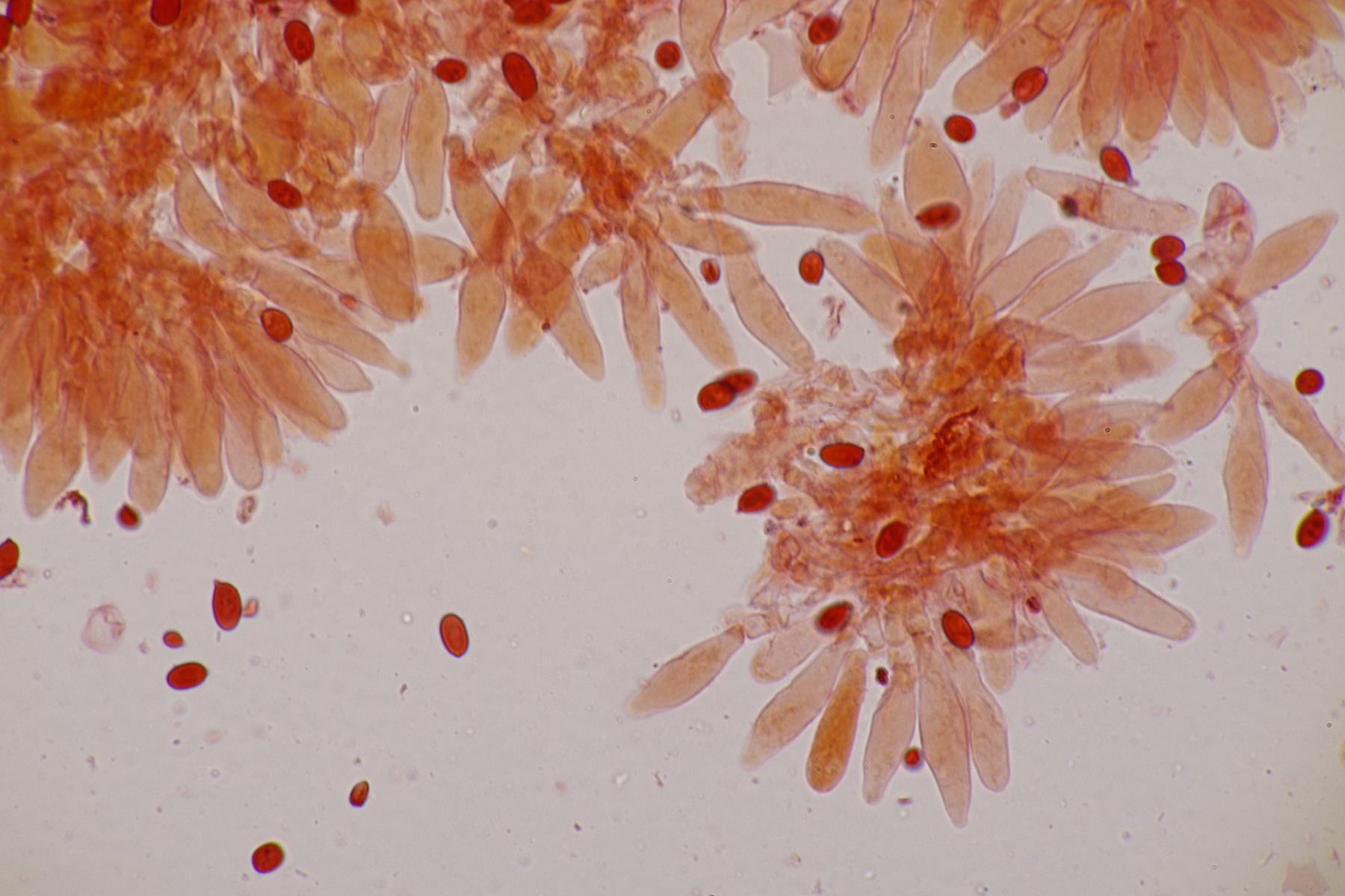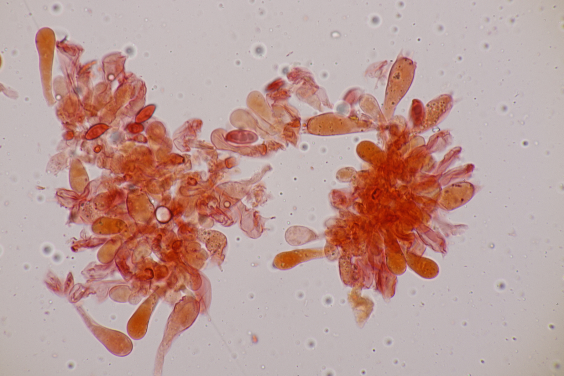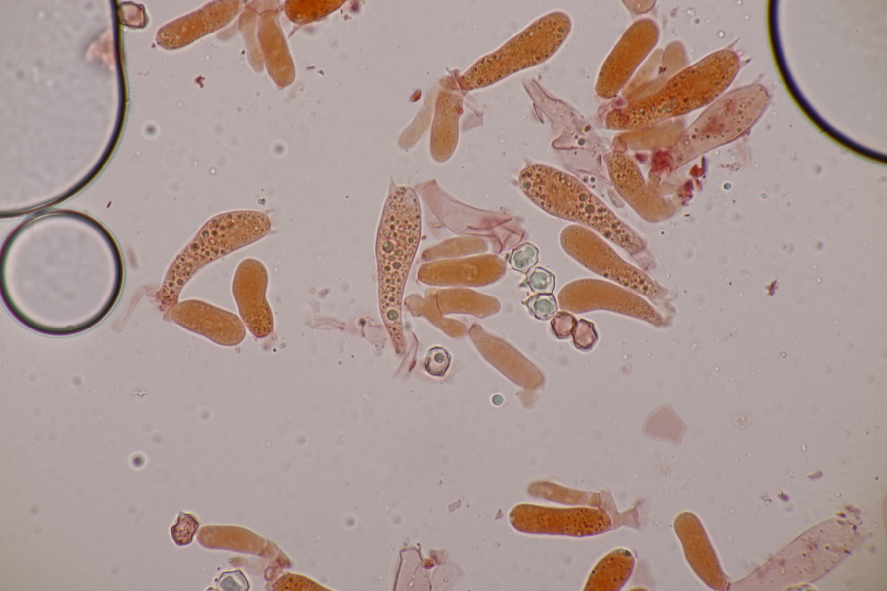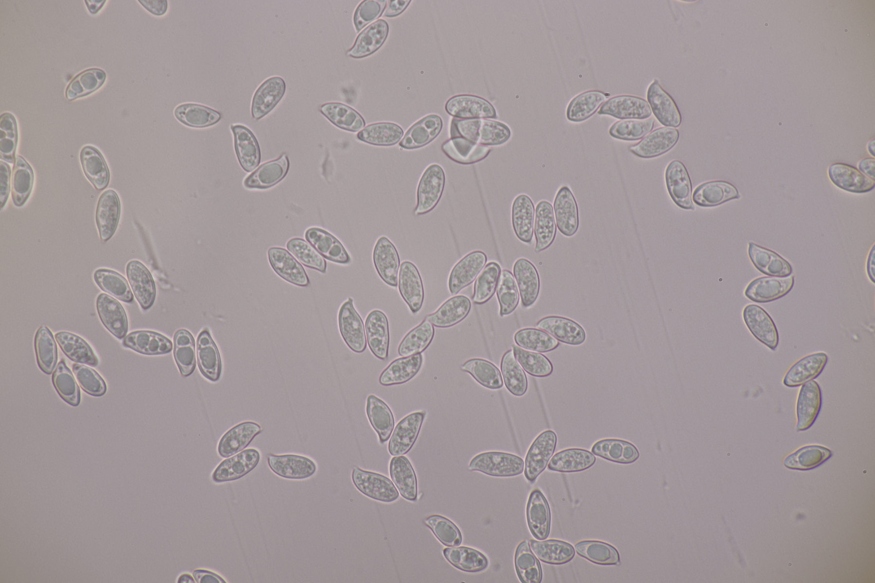 10. Eine Entoloma im Rasen unter Populus ohne besonderen Geruch. Basidien 4-sporig mit Basalschnalle, Lamellentrama mit Schnallen, keine Zystiden, Huthaut mit intrazellulärem Pigment und Schnallen, Sporen 9.0-11.0 x 6.6-8.9, Q=1.1-1.5, 9.8 x 7.5, Q=1.3. So wirklich komme ich da nicht zu einem Ergebnis und bin mir schon Erschlüsseln des richtigen Schlüssels in der Funga Nordica unsicher. Eventuell Entoloma rhodopolium?
