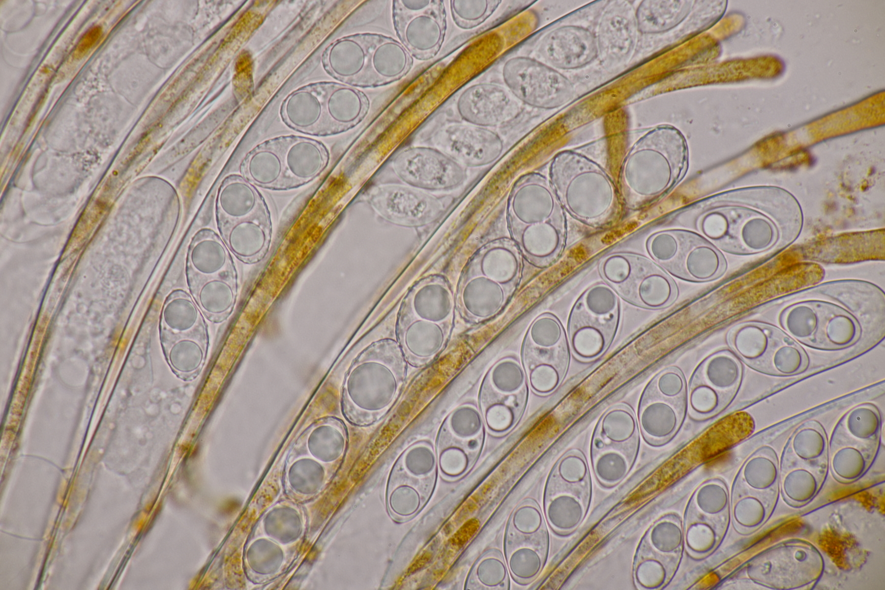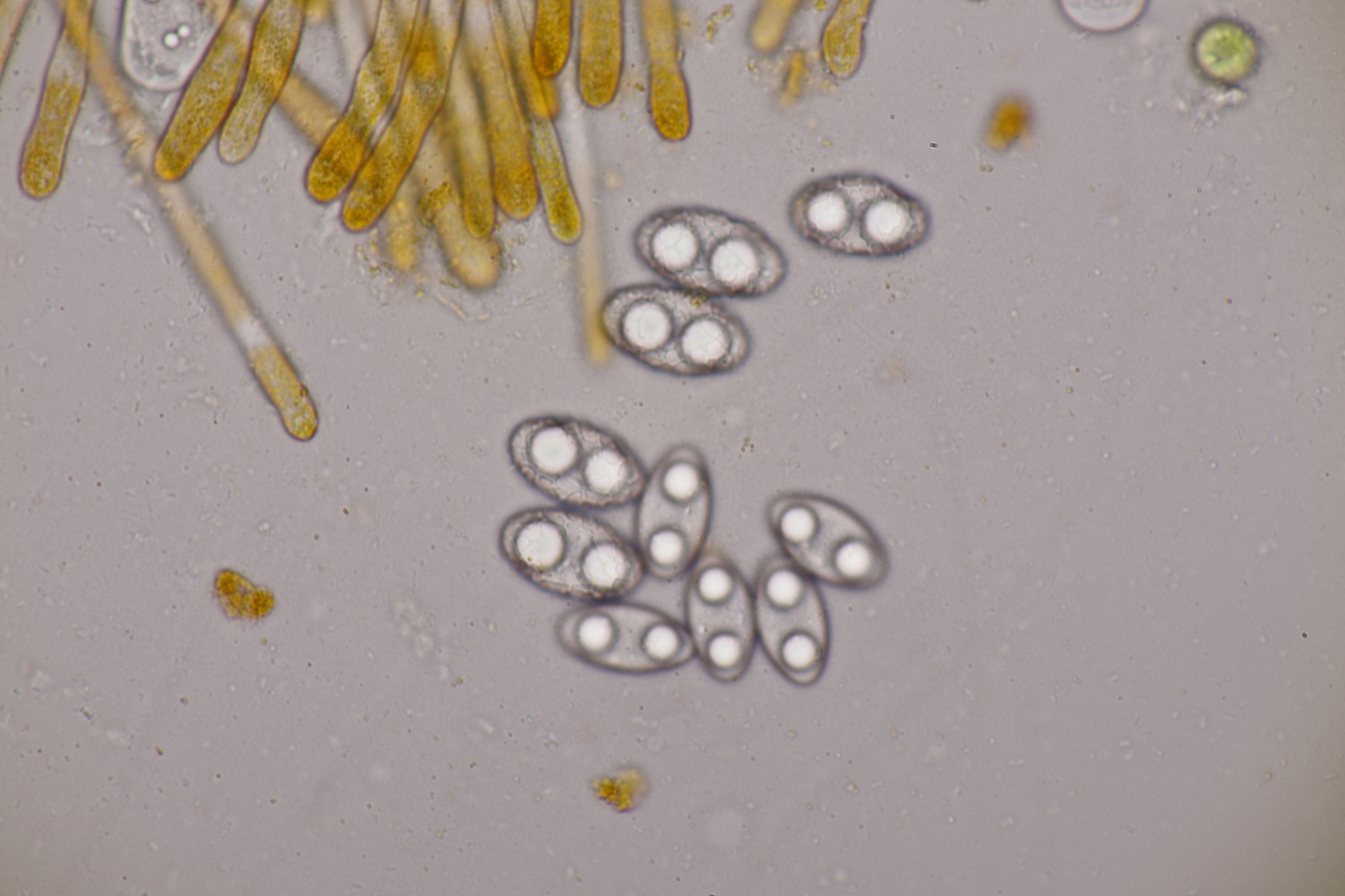 9. Neottiella rutilans. Hier ließ sich das Sporenornament auch mal sehr gut mit BWB in Milchsäure einfärben