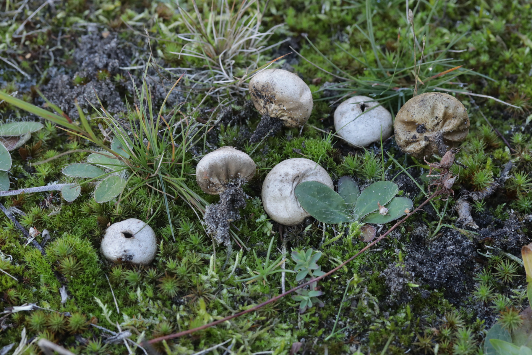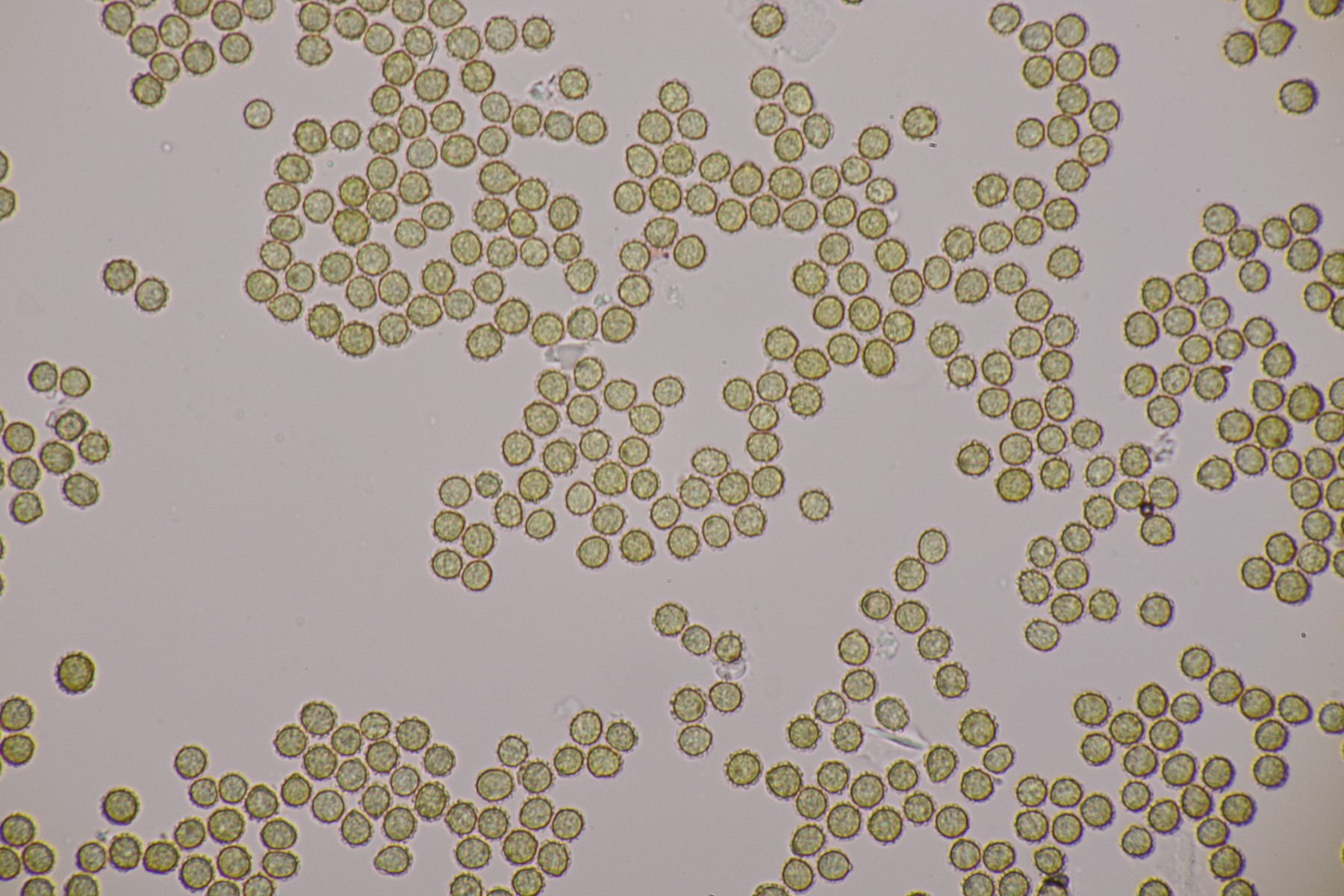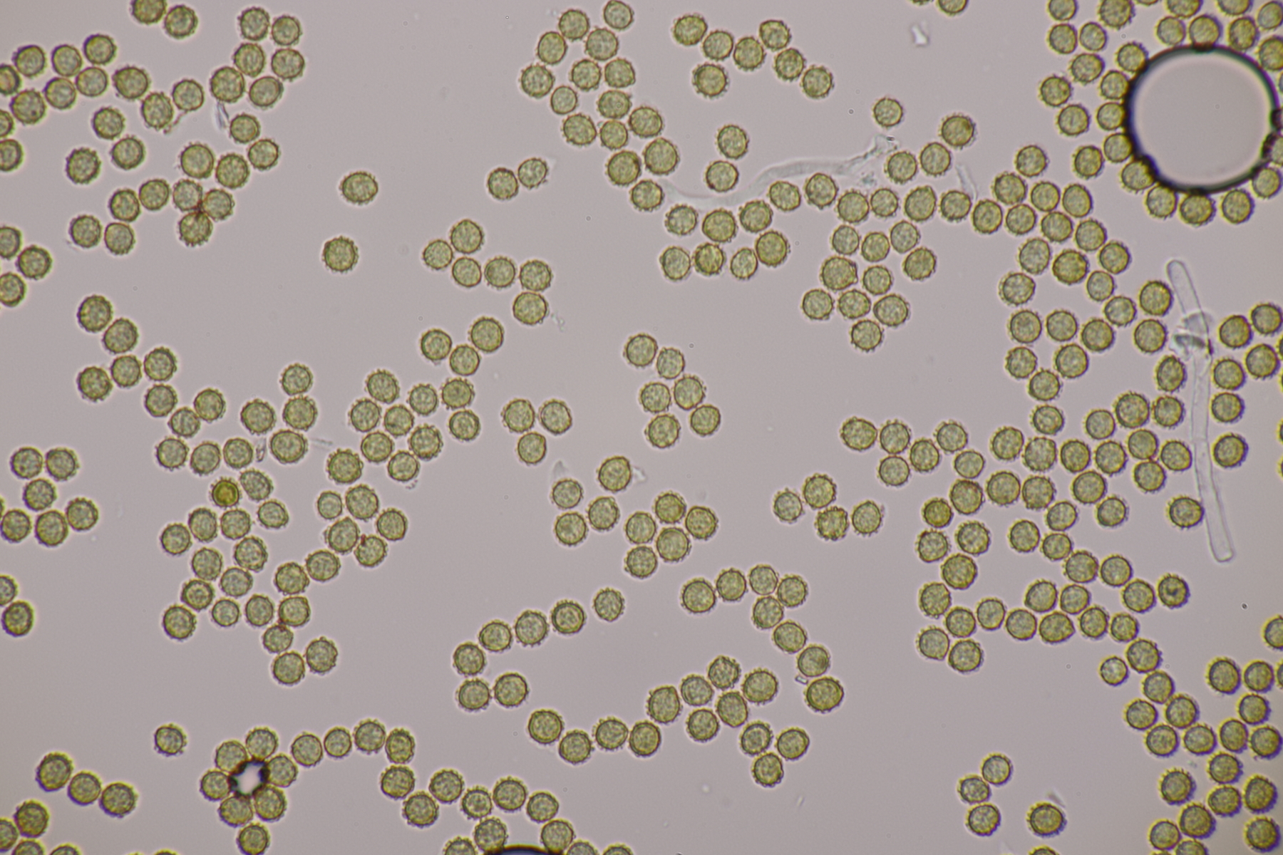1. Ein Bovist mit Sporen von 3.5-4.7 µm, ohne Pedicel, Capillitium mit zahlreichen Poren. Damit bleiben grundsätzlich nicht mehr viele Arten übrig und mit dem Standort in der Heide kommen nur noch B. aestivalis und B. furfuracea in die Endausscheidung. Ein zu Hause durchgeschnittener Fruchtkörper hat dann eine Subgleba offenbart, so daß ich bei B. aestivalis lande.