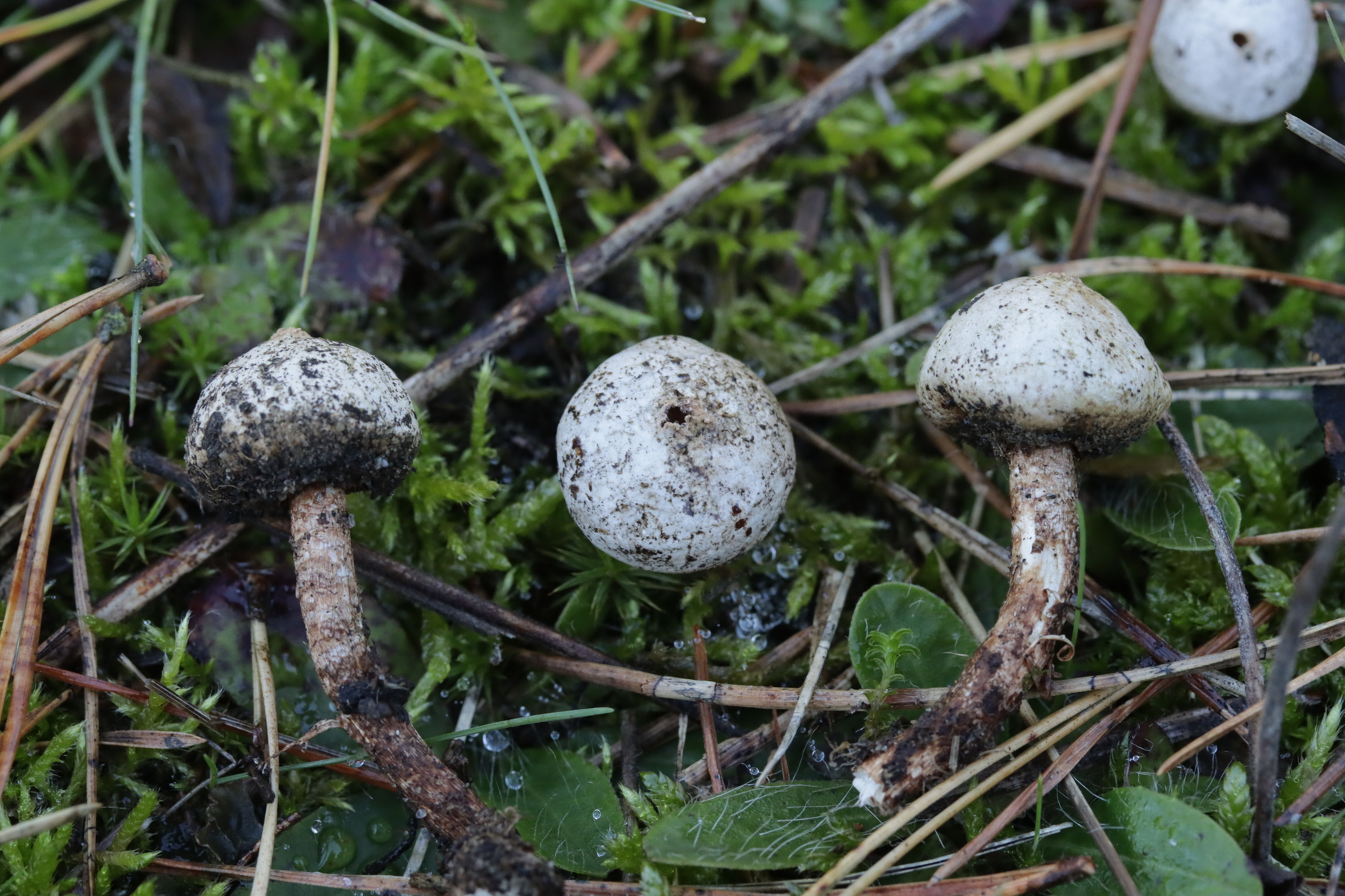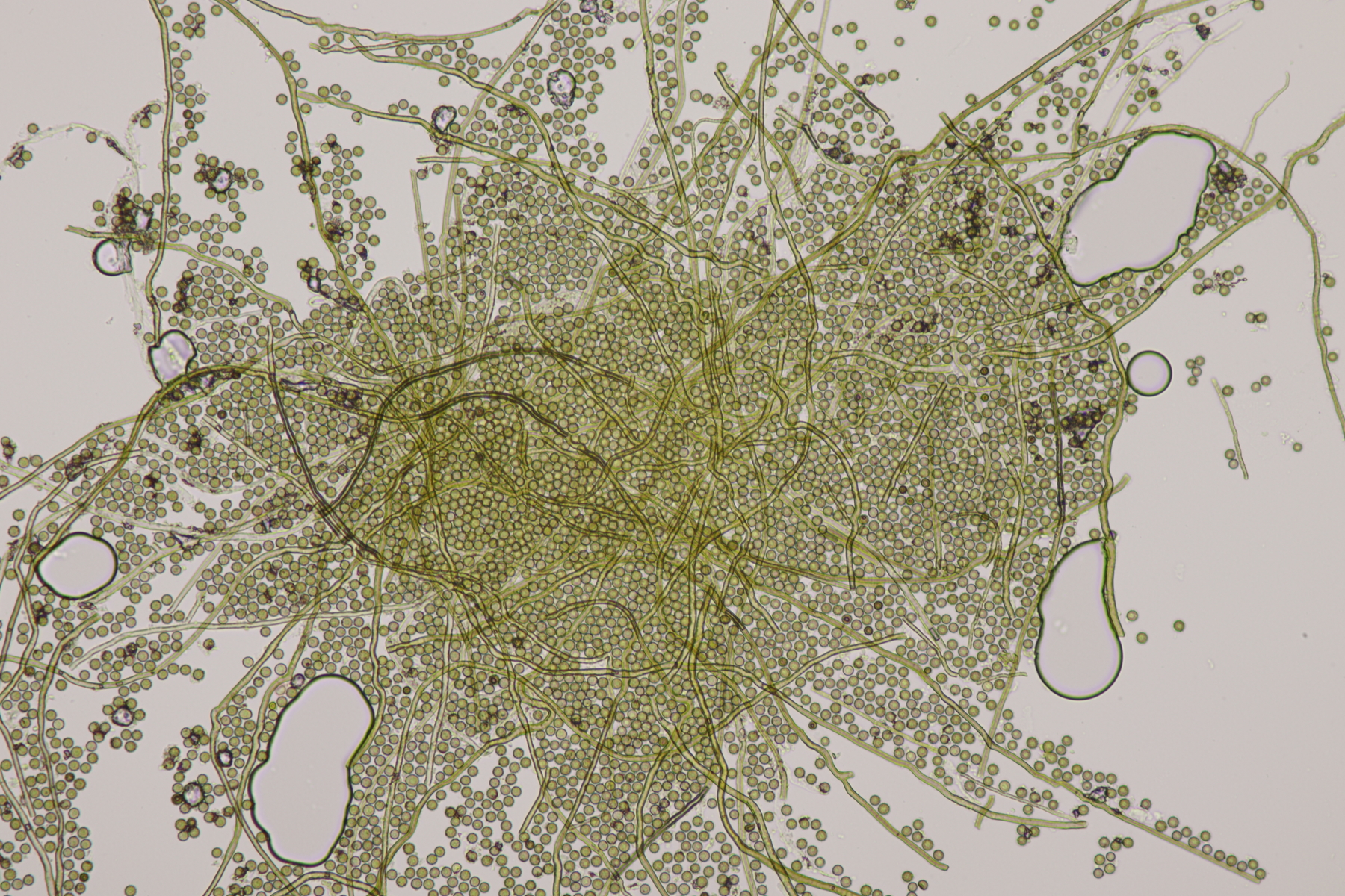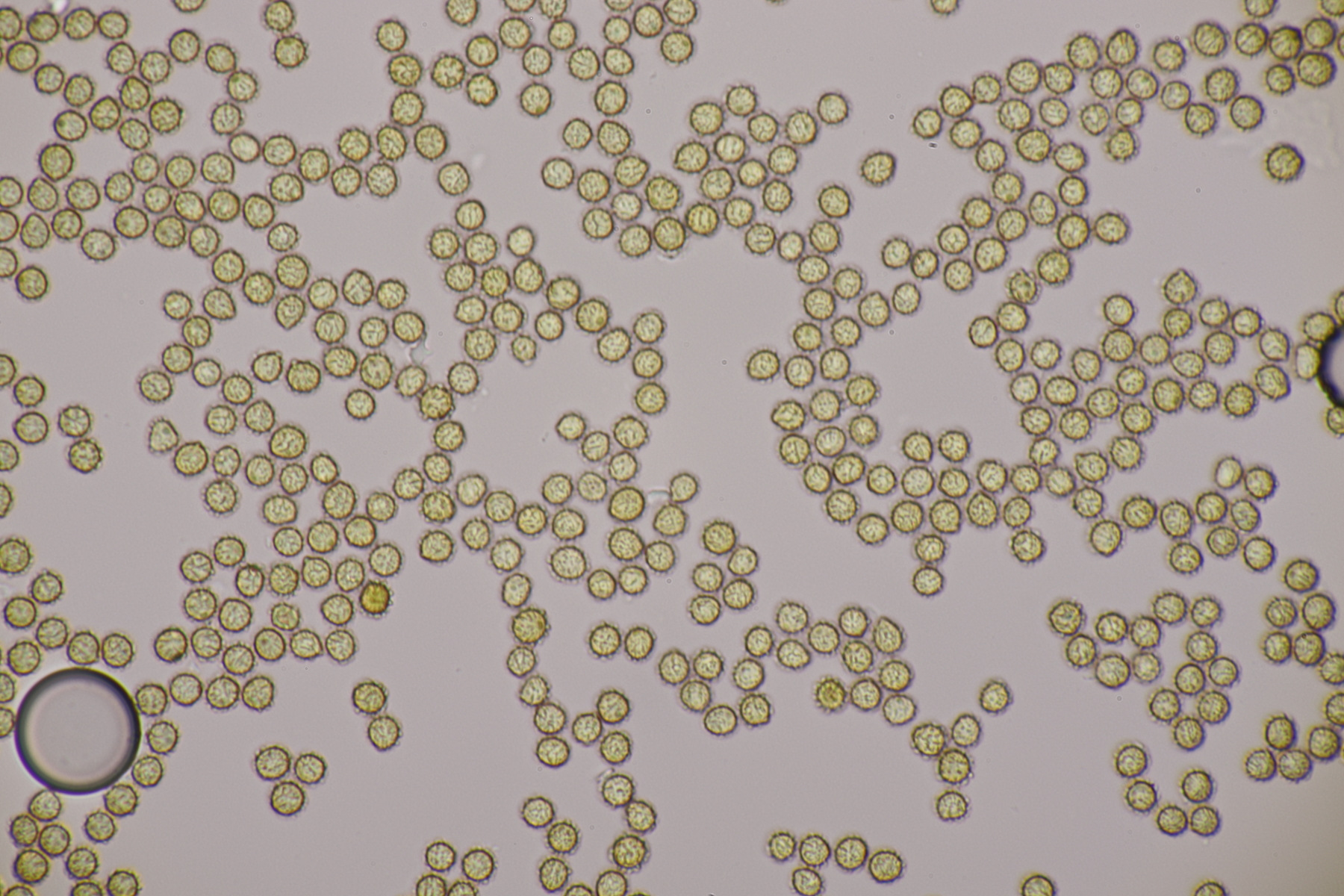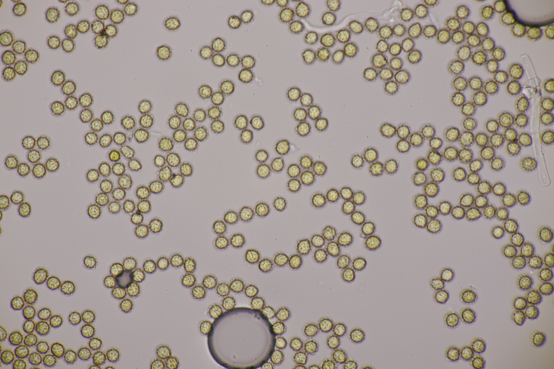 1. Ein Bovist mit Sporen von 3.5-4.7 µm, ohne Pedicel, Capillitium mit zahlreichen Poren. Damit bleiben grundsätzlich nicht mehr viele Arten übrig und mit dem Standort in der Heide kommen nur noch B. aestivalis und B. furfuracea in die Endausscheidung. Ein zu Hause durchgeschnittener Fruchtkörper hat dann eine Subgleba offenbart, so daß ich bei B. aestivalis lande.