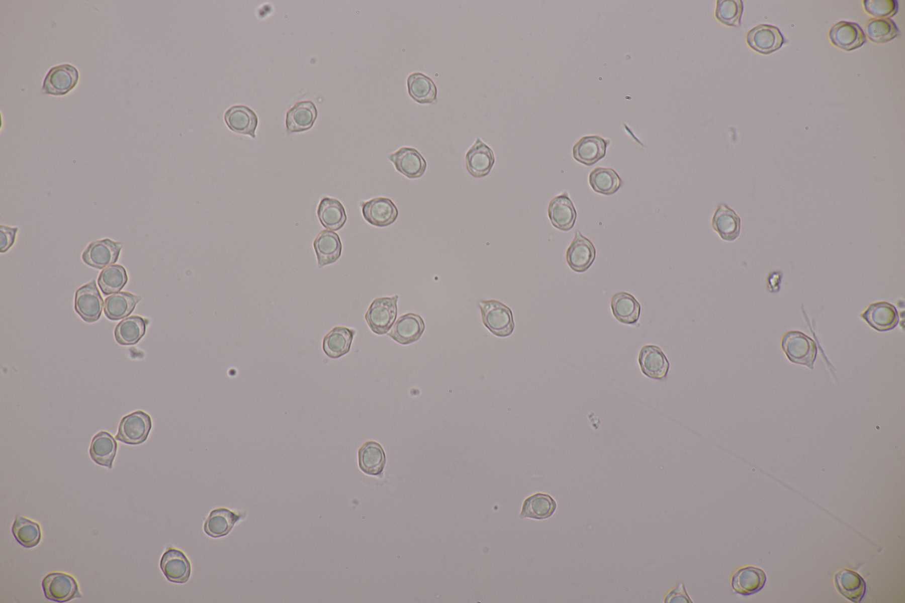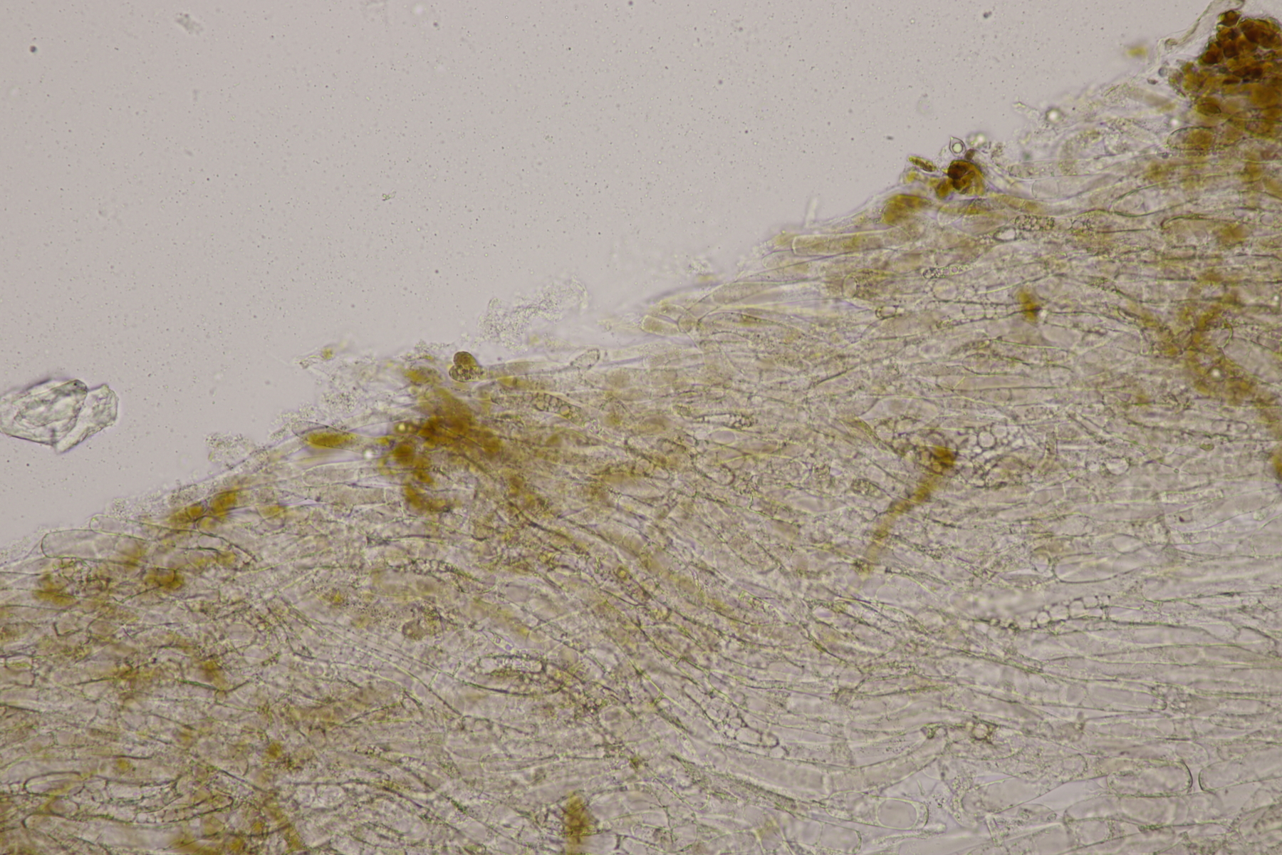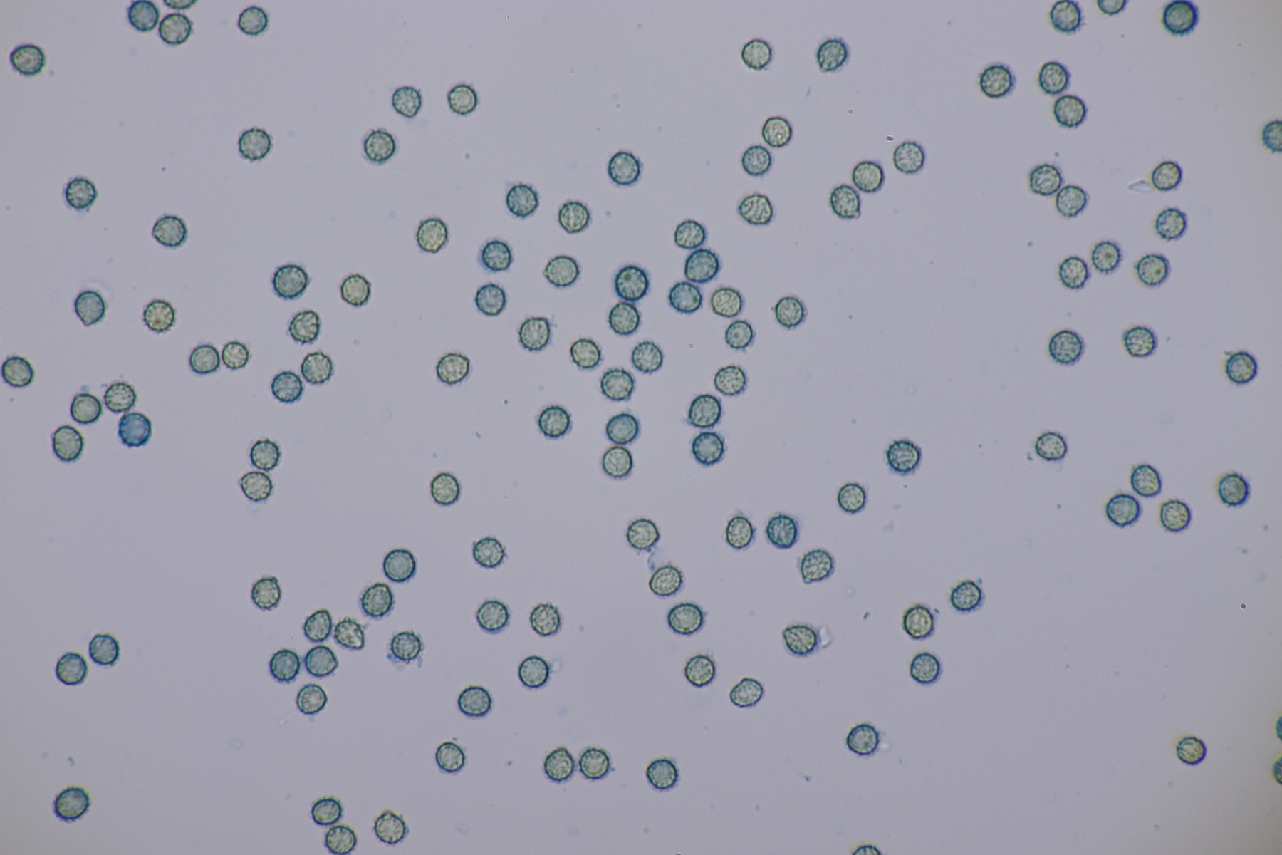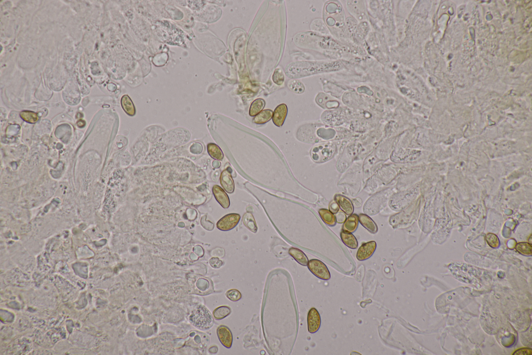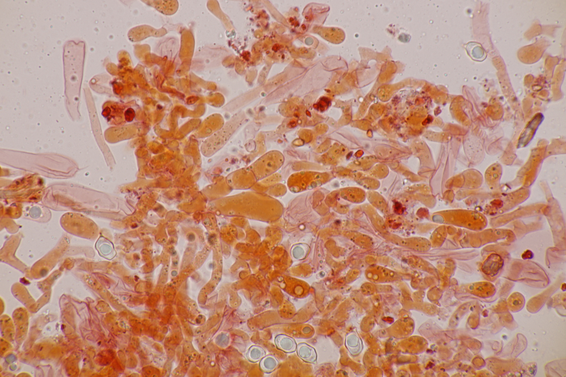 3. Eine Leptonie, die Jan-Arne mir in die Hand gedrückt hat....mit typischer Serrulatum-Schneide, ohne Schnallen, Sporen 8.2-10.0 µm x 6.0-7.1 µm, Q=1.2-1.5, im Mittel 8.8 x 6.6, Q=1.4. Dann bleibt wieder die leidige Frage nach den Farben. Auf den Fotos meint man wieder einen leichten Blauschimmer zu erkennen, aber im Feld war auch bei jungen Fruchtkörpern nicht unbedingt mit Sicherheit ein Blauton zu erkennen und konnte allenfalls erahnt werden. Ein weiterer Fall von Entoloma sp.?