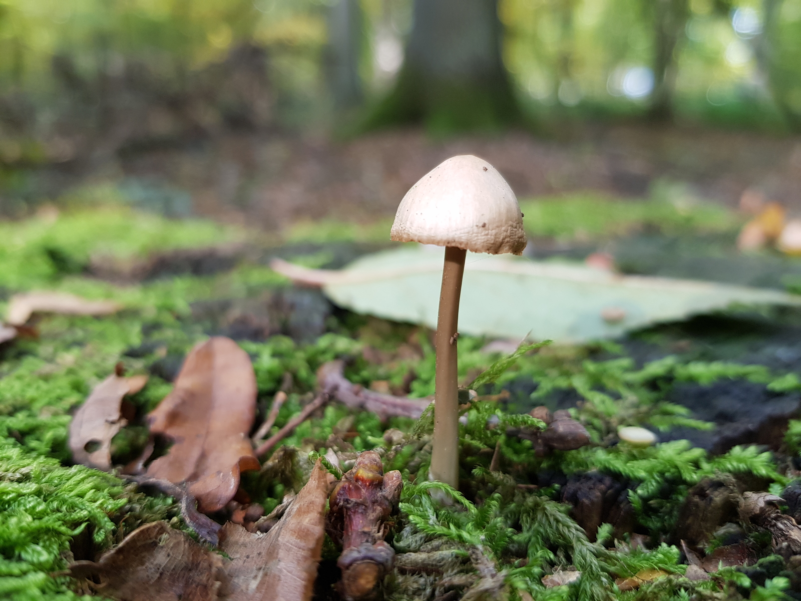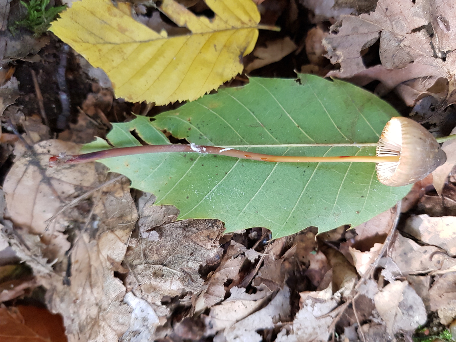 Den zweiten schaffe ich nicht zu bestimmen: Ist das auch ein Helmling? Ich finde keinen Pilz mit einem so glatten braungrauen Stiel mit passendem Hut. Vom Stiel her könnte es der Rettich-Helmling sein; der Hut ist aber nicht gerieft.