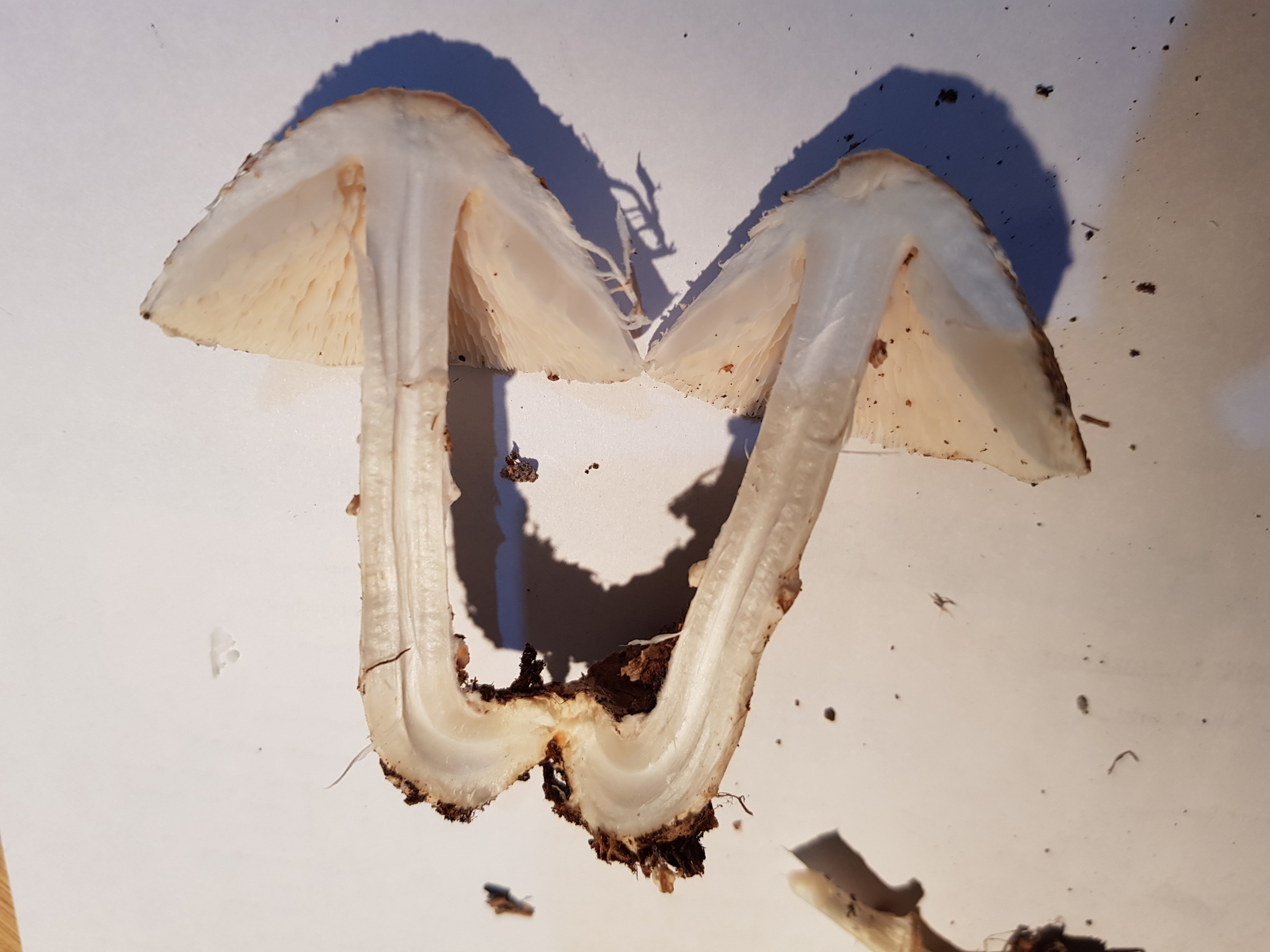 Stiel ist hohl; unter der Ringzone flockig, wollig, filzig; Basis leicht knollig;