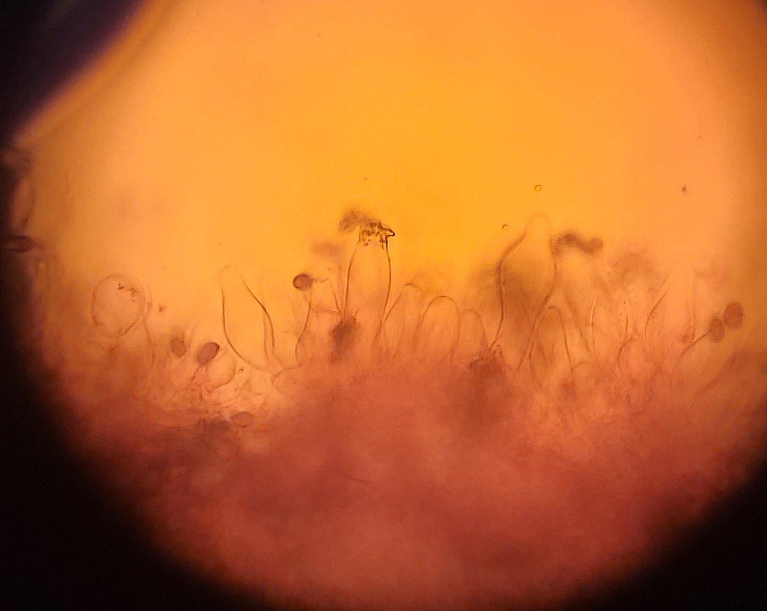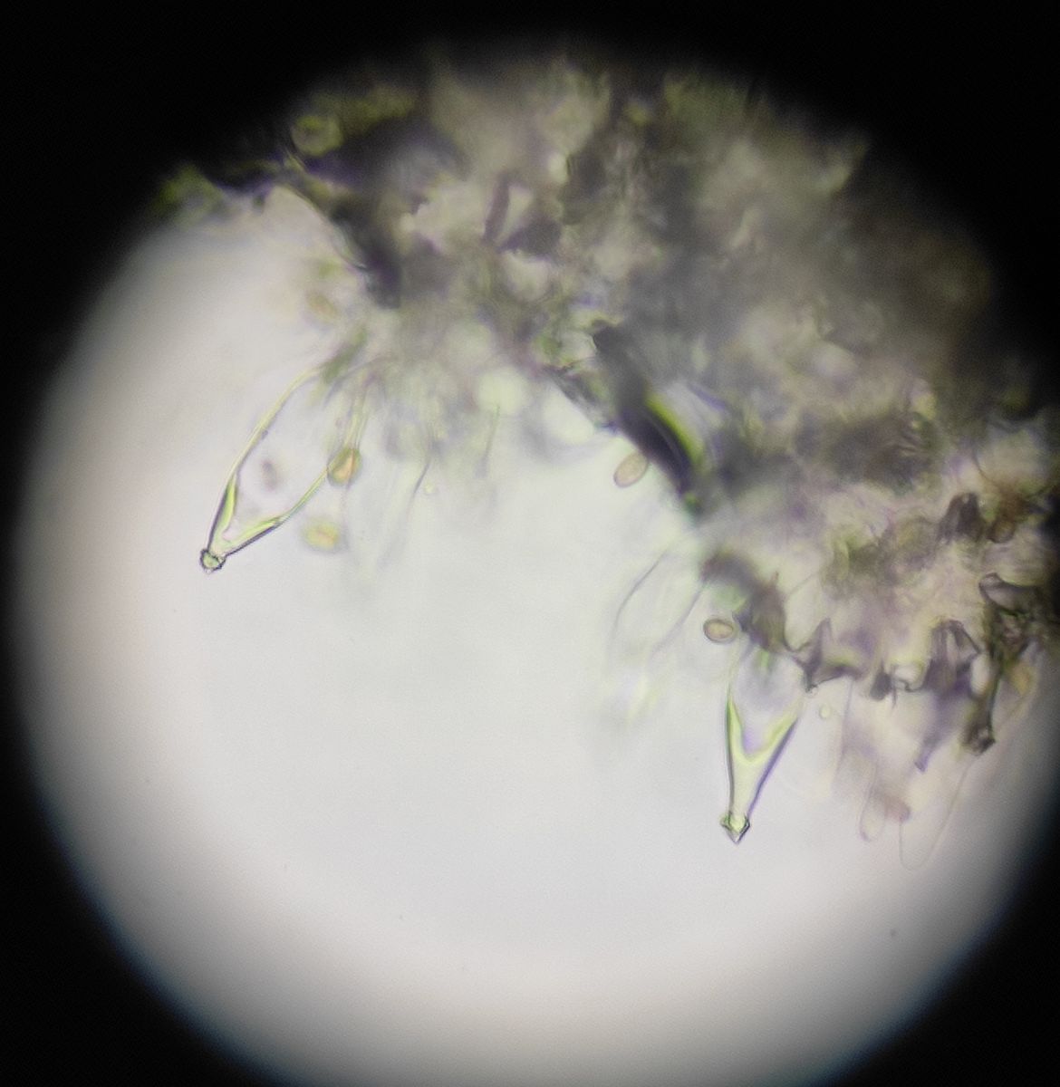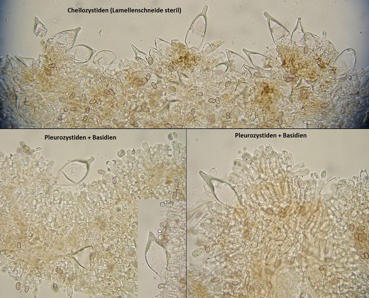 Zystiden zum Teil mit apikalen Kristallen, clavat und utriform, ohne verdickte Wände.