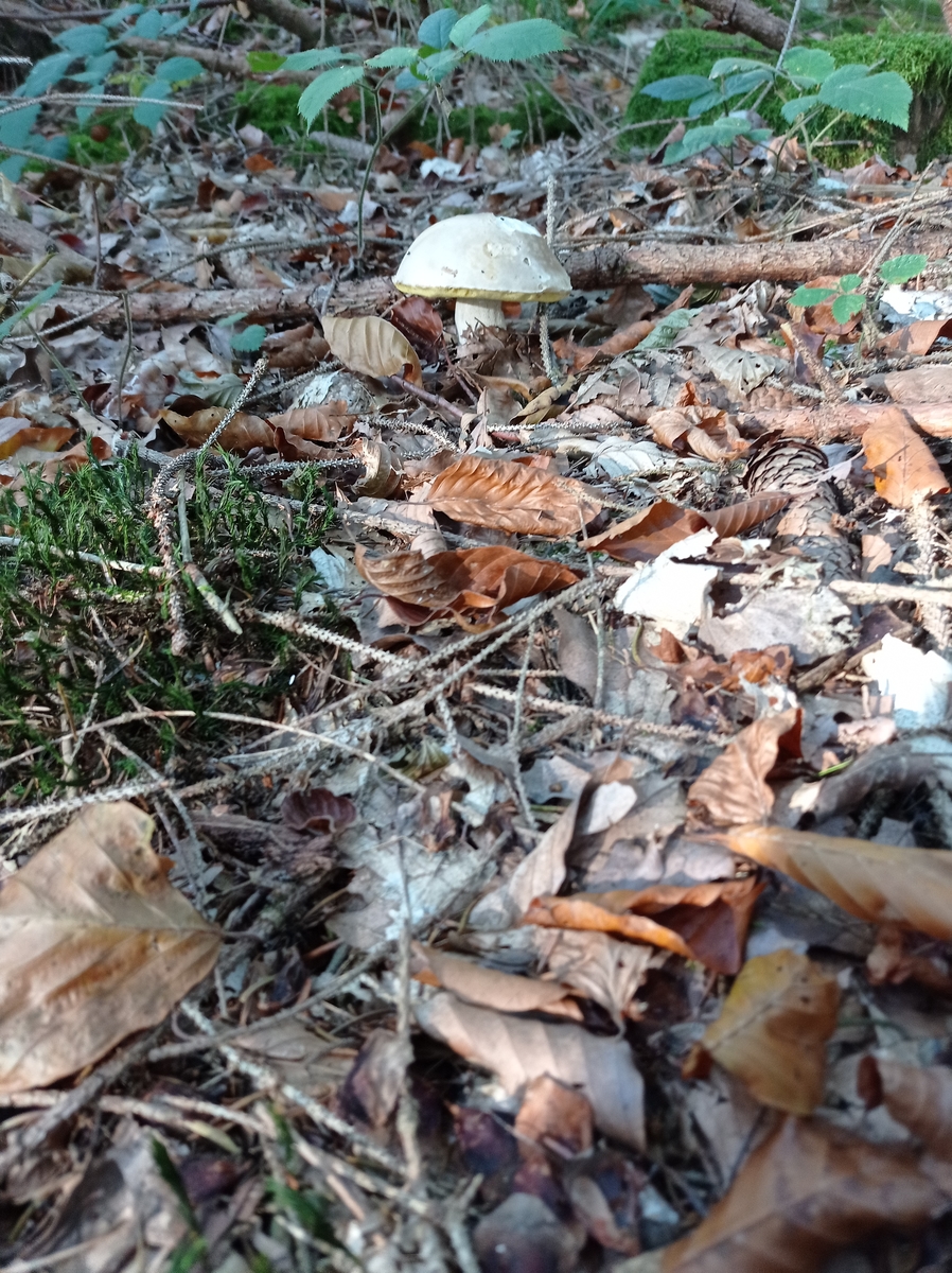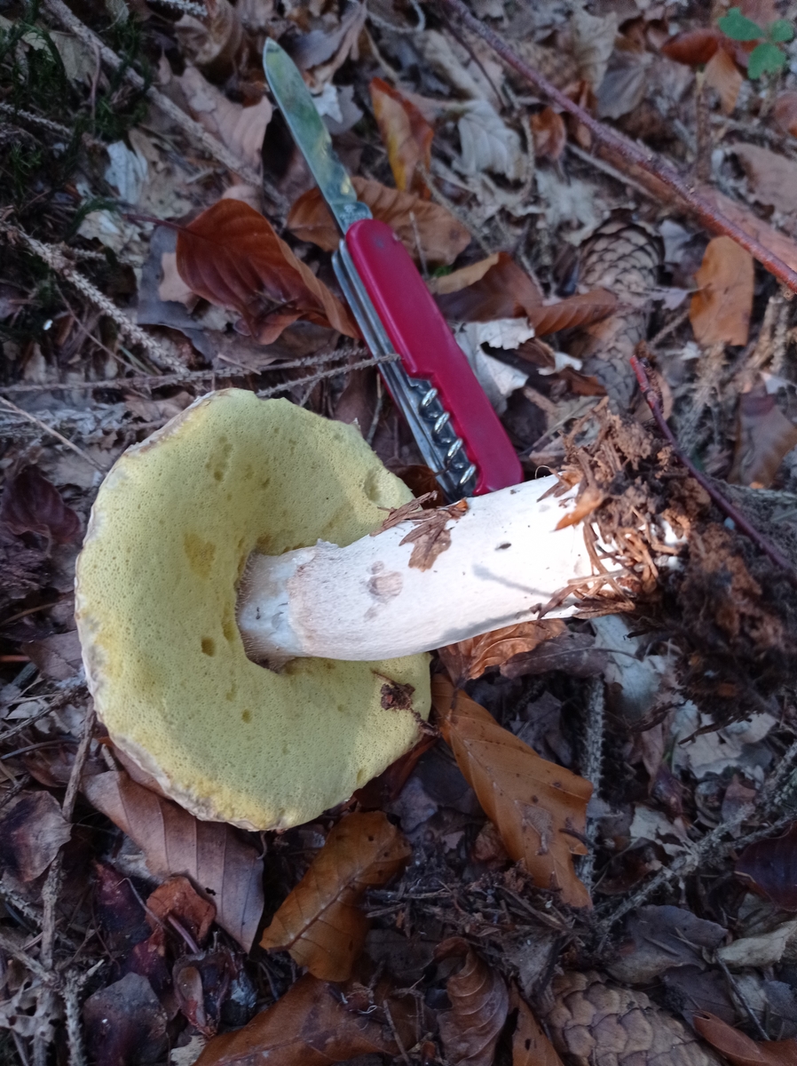 Röhrenpilz: Heller Hut, gelbe Röhren