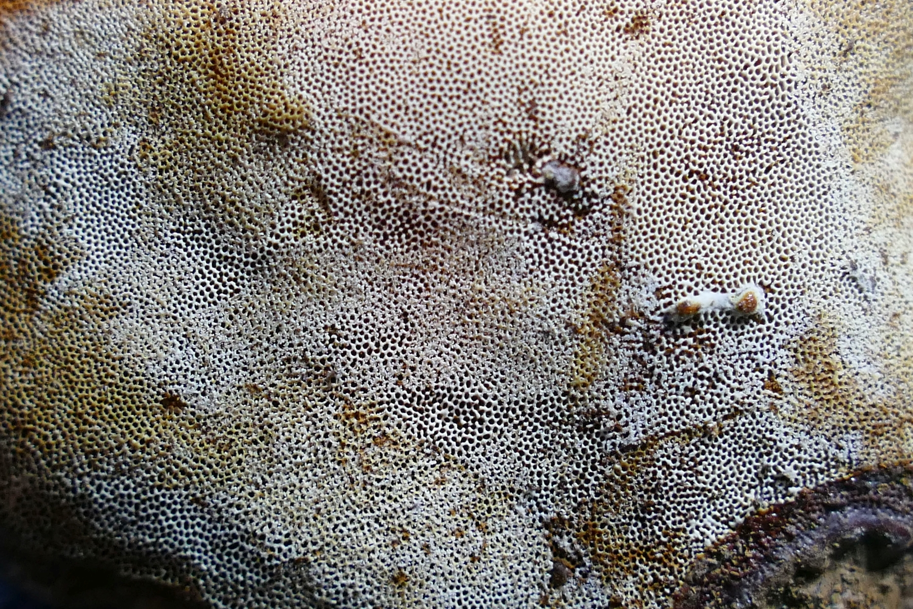 Bild 6 vom Hymenium / teils weiß verstopfte Poren (Sprorenansammlungen?)