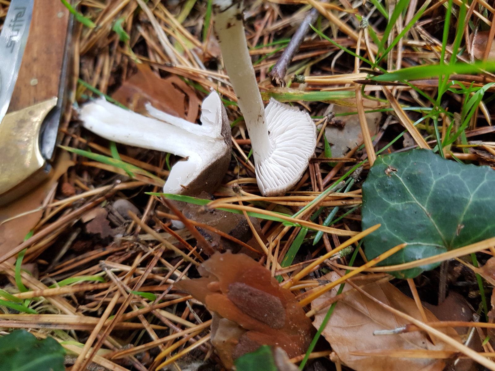 Lamellen sind weiß in Richtung grau; ausgebuchtet angewachsen und schwach herablaufend