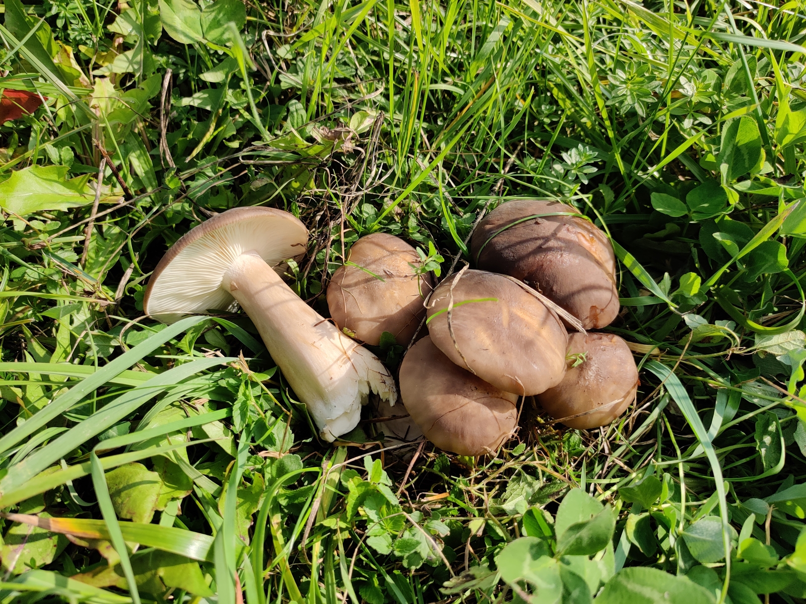 4. Gefunden auf einer Wiese. Den hätte ich als Lyophyllum decastes s.l. eingeordnet, passt das?. Den kenne ich nur in weniger kräftig aus dem Wald wo er an Wegrändern vorkommt. Aber da stecken ja anscheinend mehrere Arten dahinter.