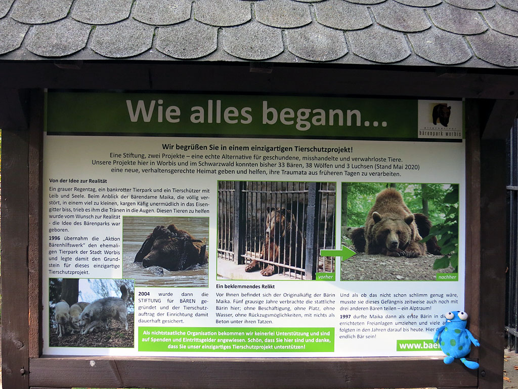 In diesem Park wird auf einigen Schautafeln erklärt, wie die Menschen Bären geqüalt haben und es auch heute noch tun. Das