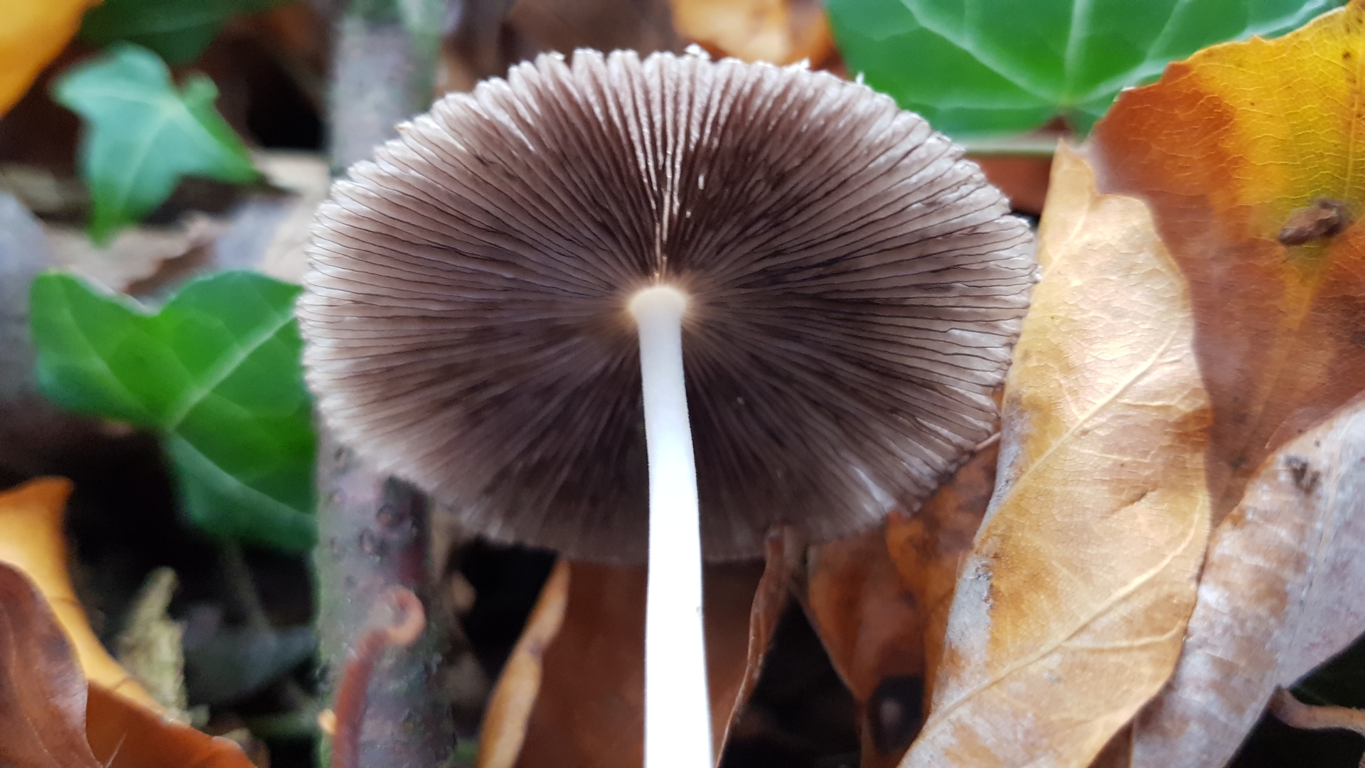 Lamellenanwuchs am Stiel angewachsen (zumindest meinte ich das mit der Lupe erkannt zu haben), allerdings Hut und Stiel leicht voneinander trennbar!, Sporenpulver schwarzbraun
