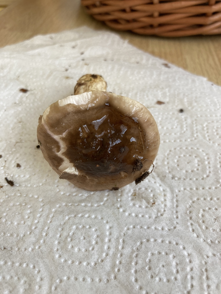 Der Hut ist stark schleimig und der Stiel etwas.