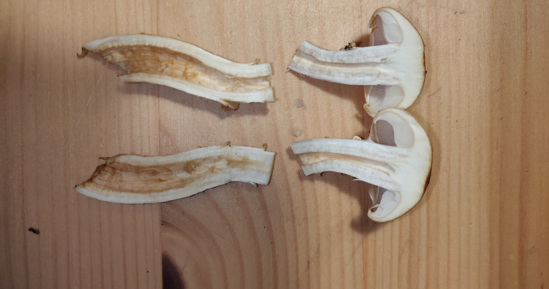 Was es ist kann ich auch nicht sagen. Ich würde vor allem einen größere Kollektion mit FK in diversen Stadien sammeln, so ca. 10 FK von jung und geschlossen bis ganz alt und aufgeschirmt. Meine erste Idee womit man diesen Fund vergleichen soll, wären Schwefelköpfe und Ringloser Hallimasch. Es sind aber nur erste Impressionen, keine Bestimmung.